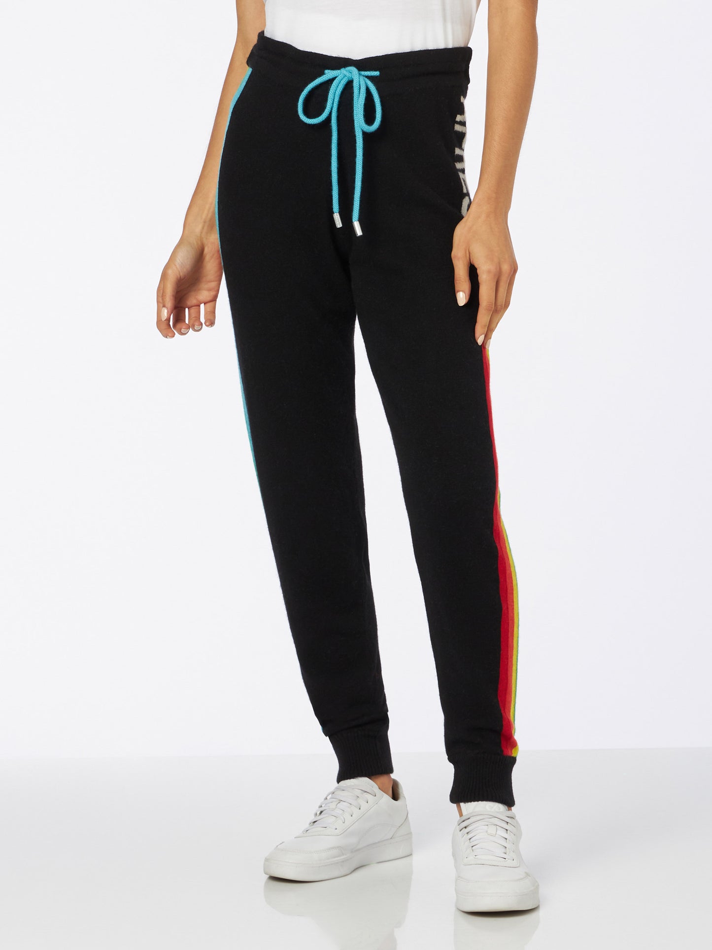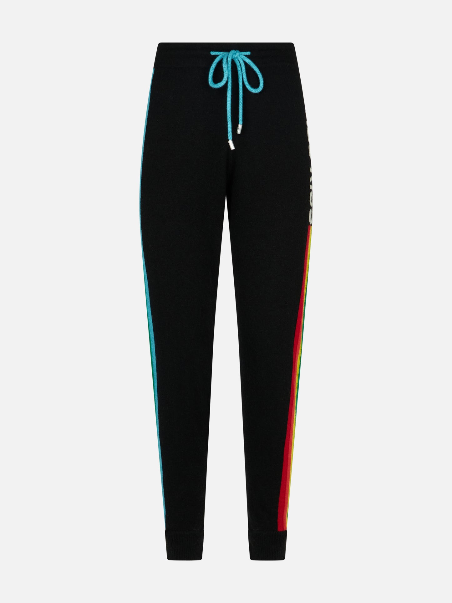 Knitted sweatpants with rainbow intarsia