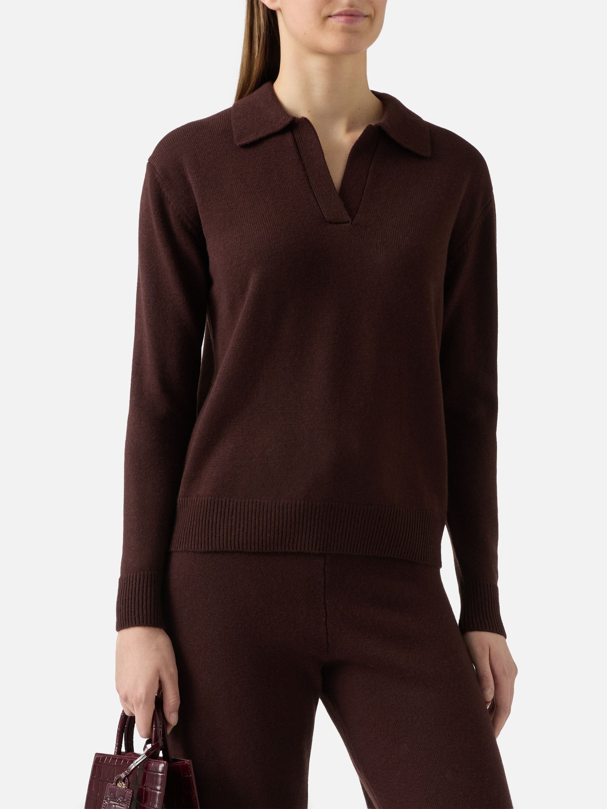 Cambon palazzo trousers in pure wool brown high waist with drawstring