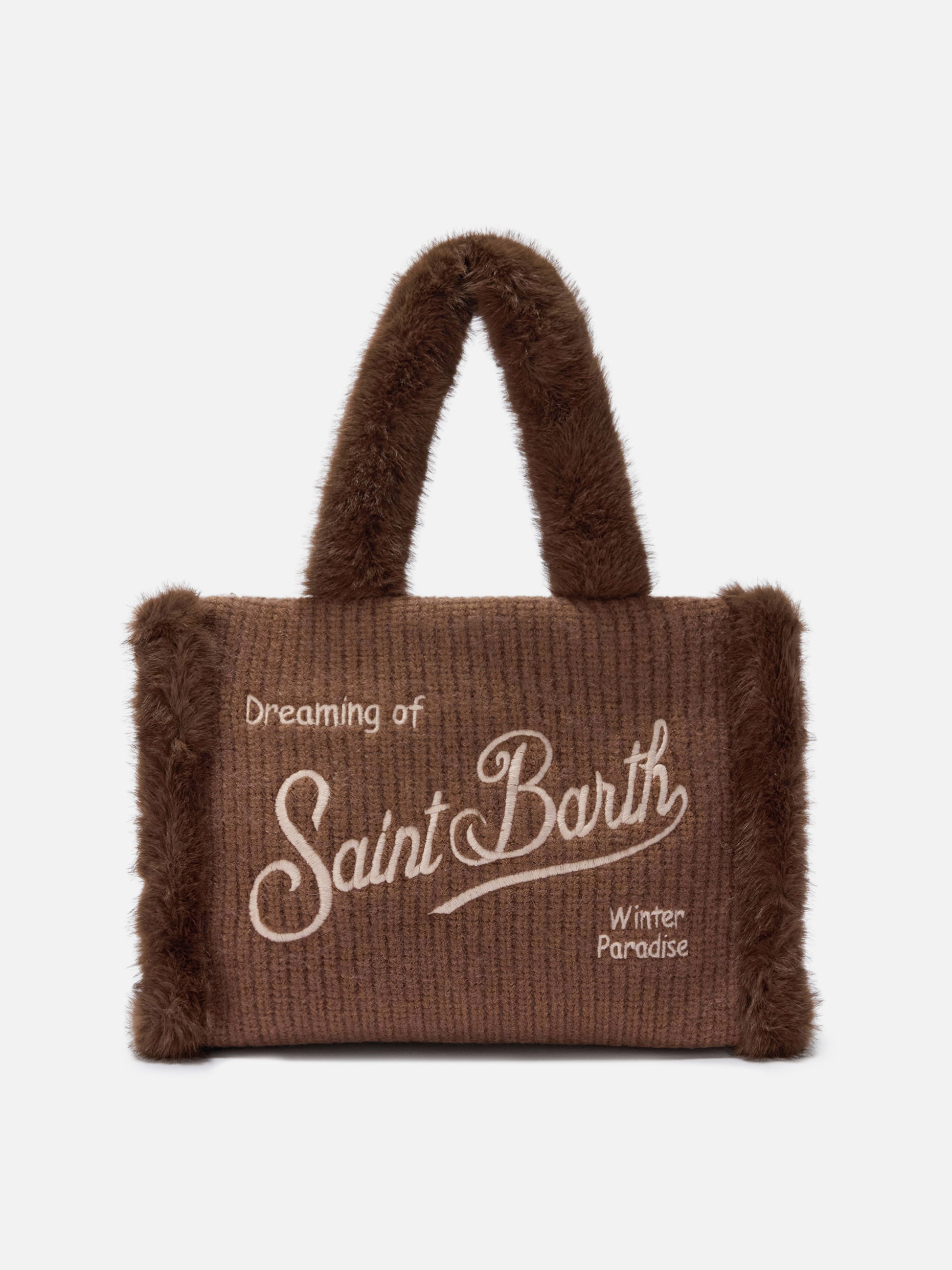 Colette Shearling Rib Handbag in ribbed brown wool blend and shearling