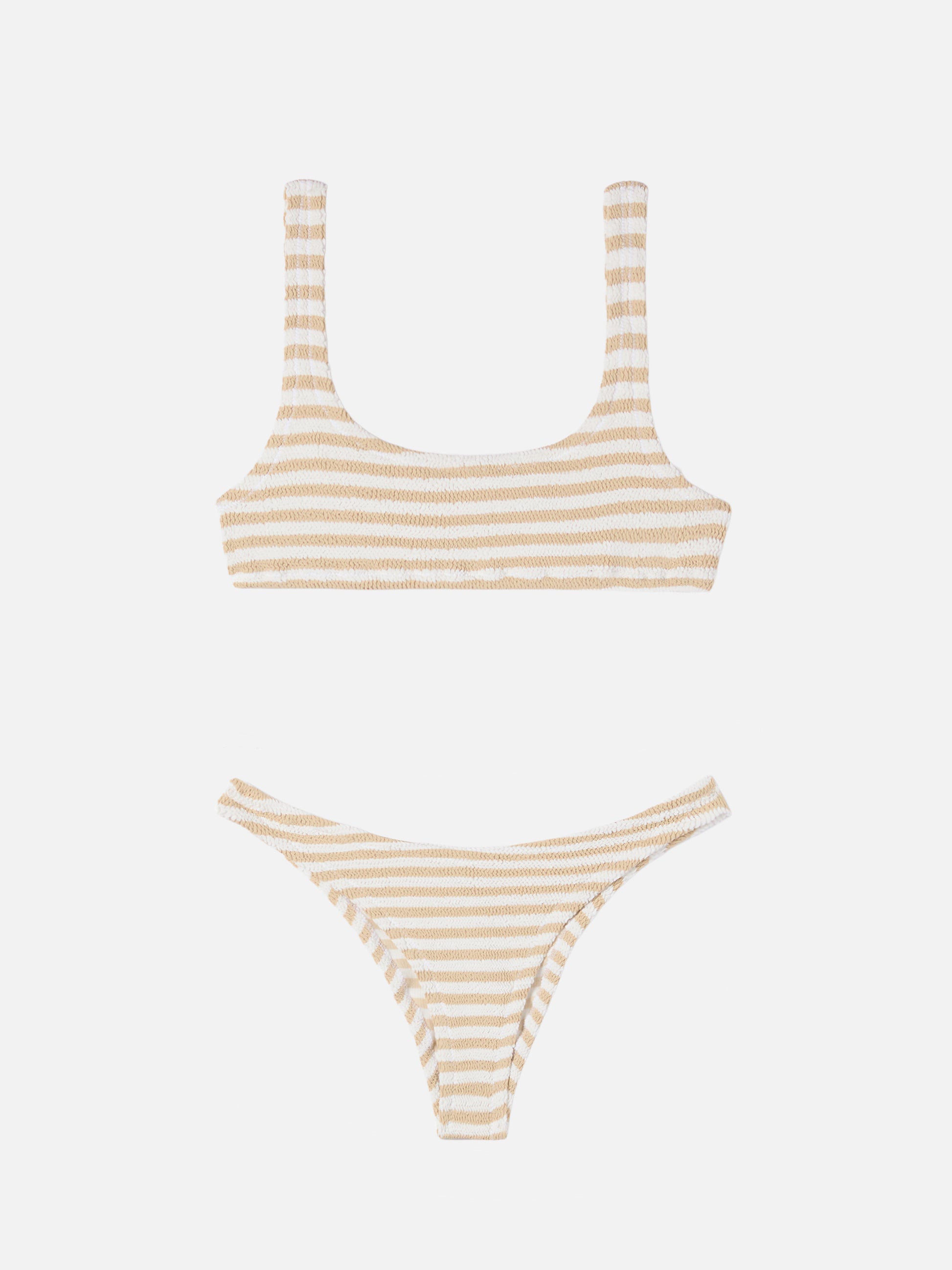 Our Naima bralette top excels in coverage, support and color variety. Choose your normal size for a medium coverage; choose one size down for less coverage and a more generous neckline. Our classic crinkle swim briefs Elise offer the perfect balance of coverage and impeccable style.