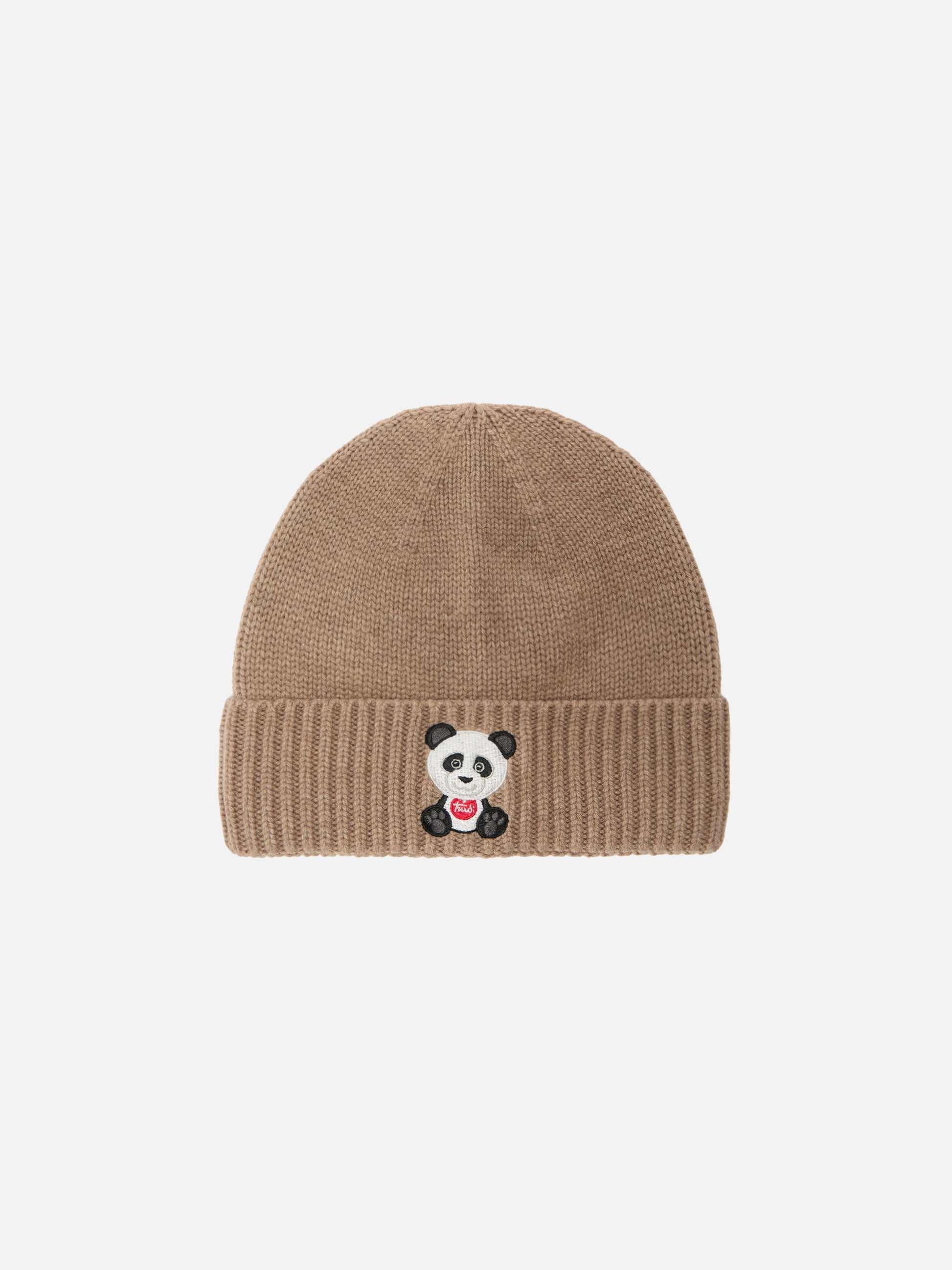 Holden cashmere-blend beanie in beige with Trudi Panda embroidery | TRUDI SPECIAL EDITION