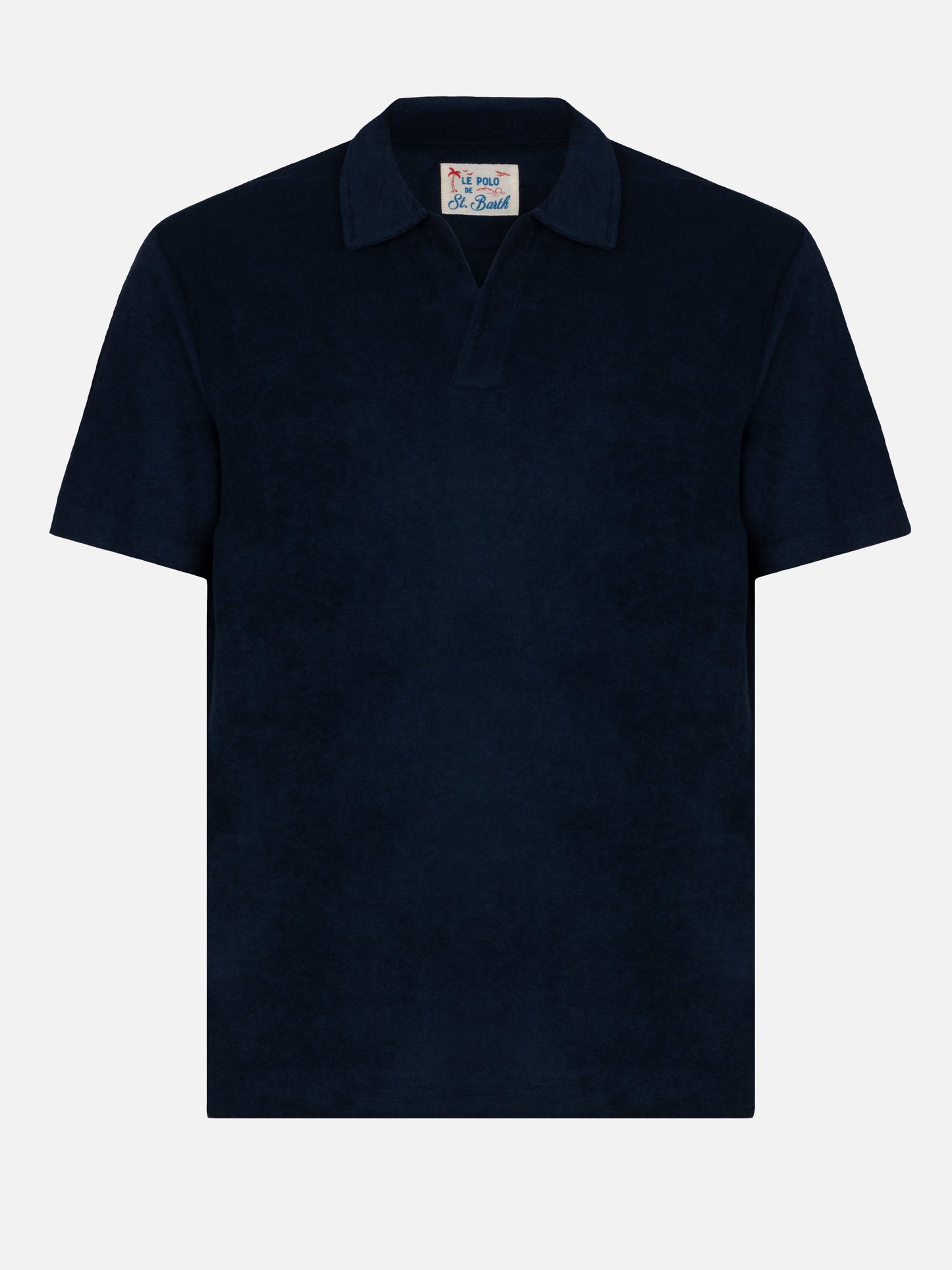 Jeremy navy blue terry buttonless polo shirt