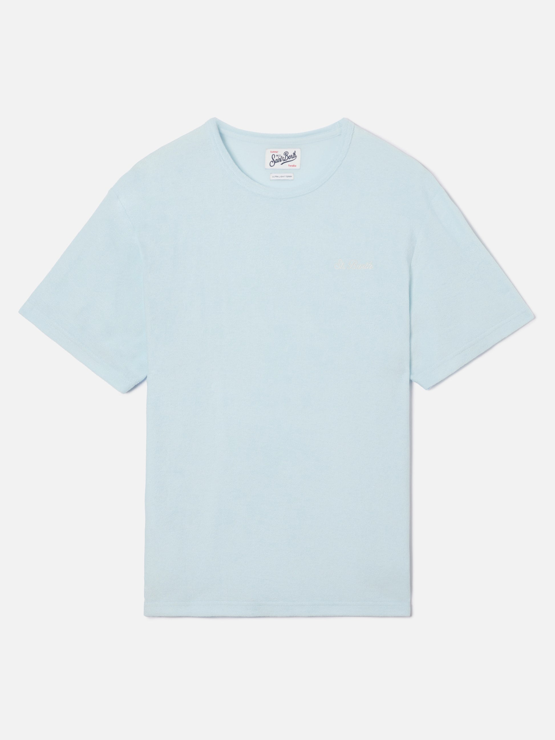 Light blue Gary cotton terry-effect t-shirt with logo embroidery