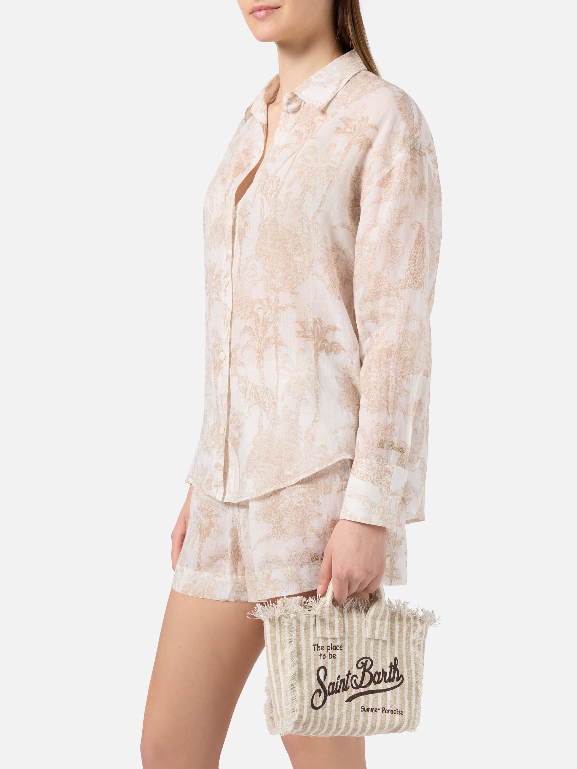 Linen Vanity bag with fine brown and white stripes