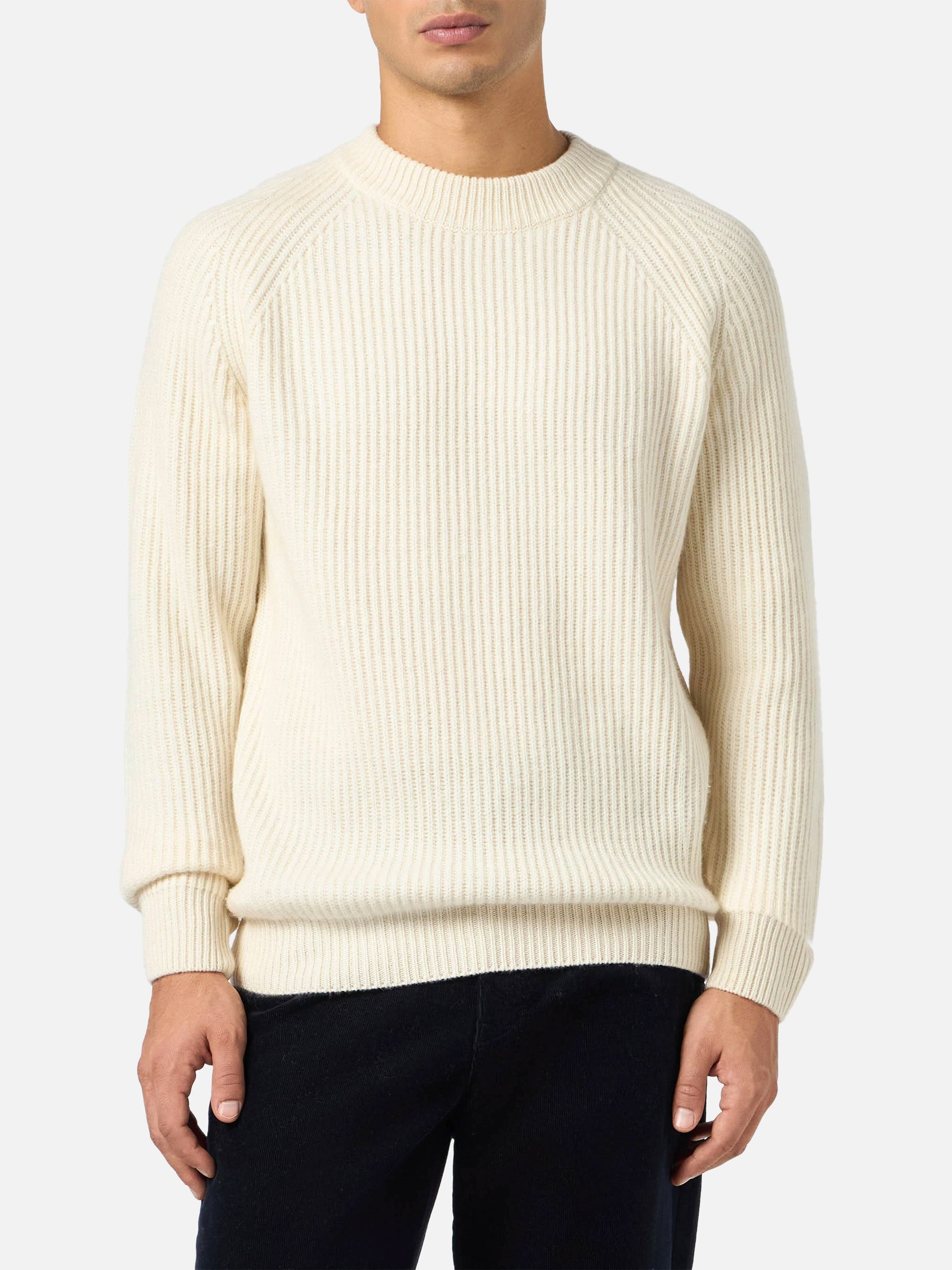 BLENDED CASHMERE white ribbed sweater Marine