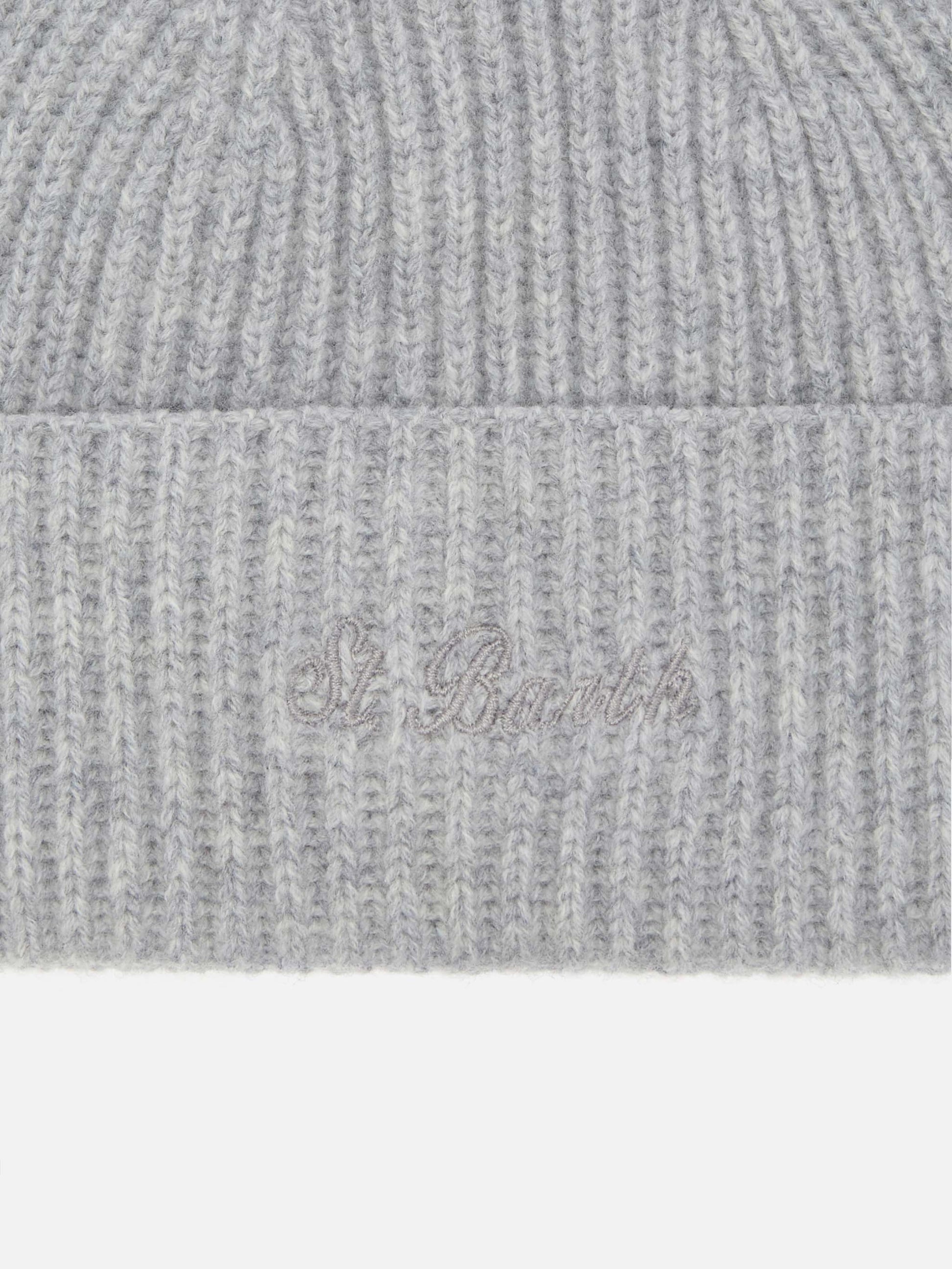 Moss Beanie in gray melange ribbed knit with St. Barth embroidery