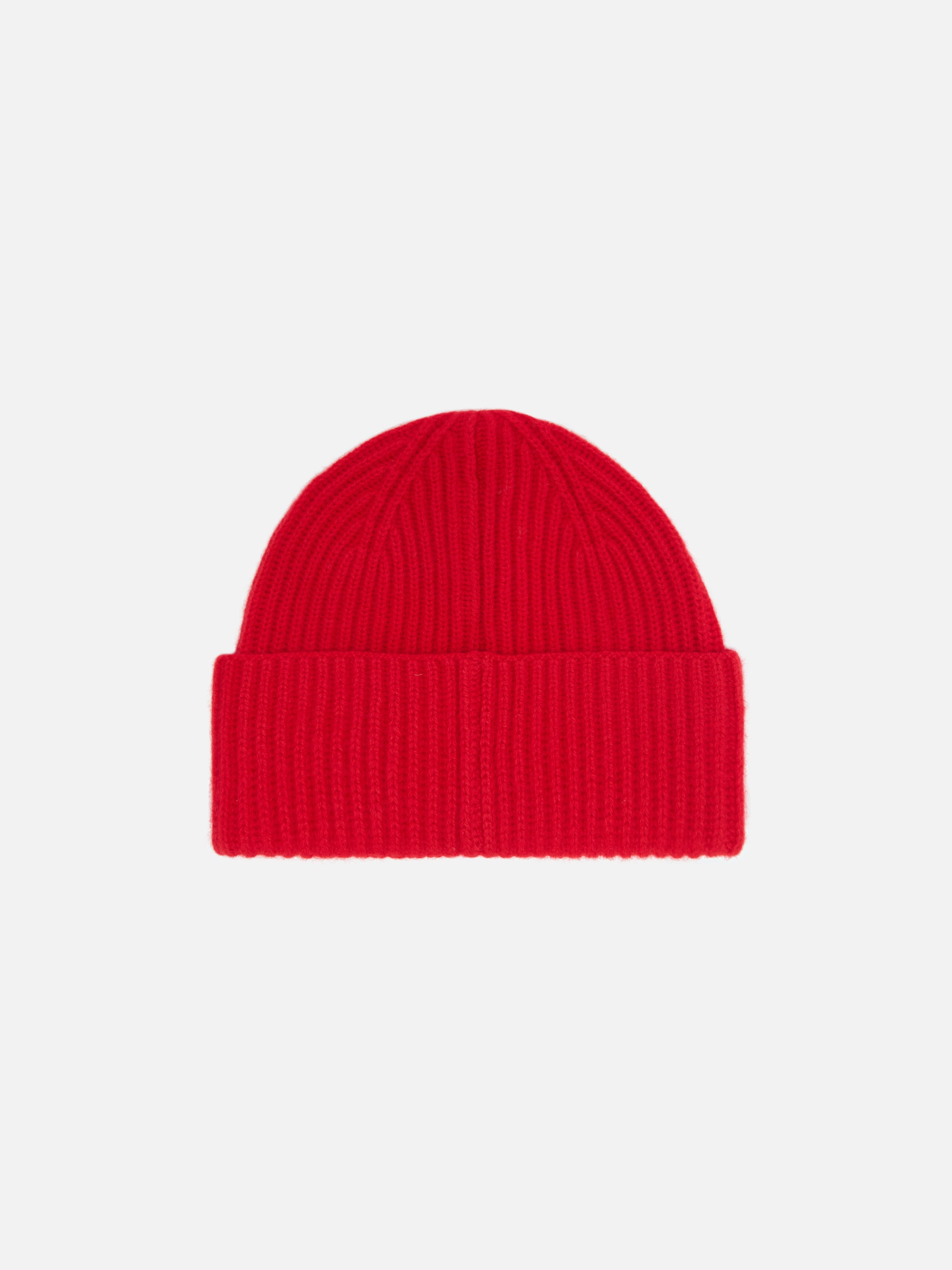 Moss Beanie in red ribbed knit with St. Barth embroidery