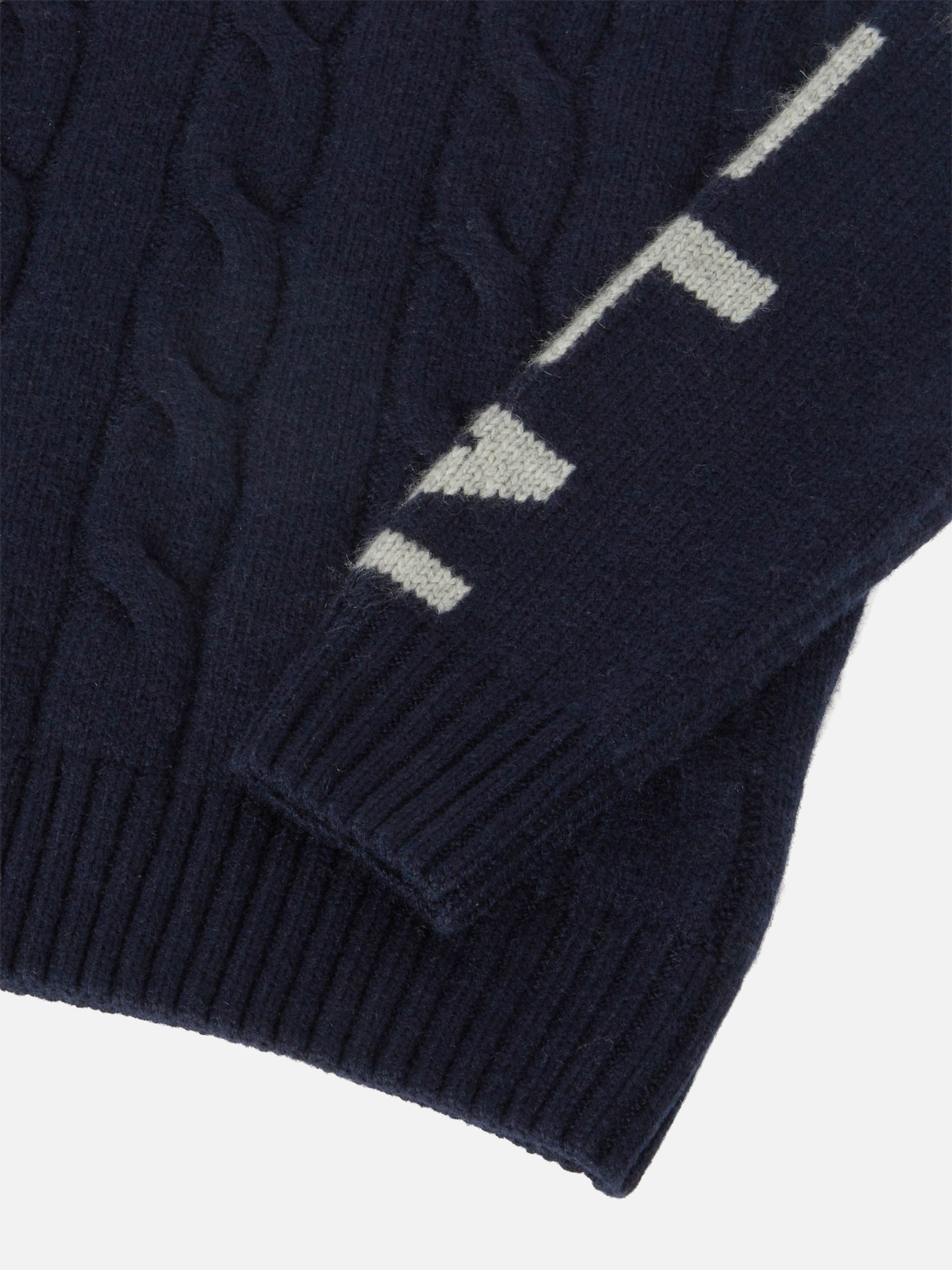 Navy blue cable-knit turtleneck Fisherman Jr sweater with Saint Moritz jacquard