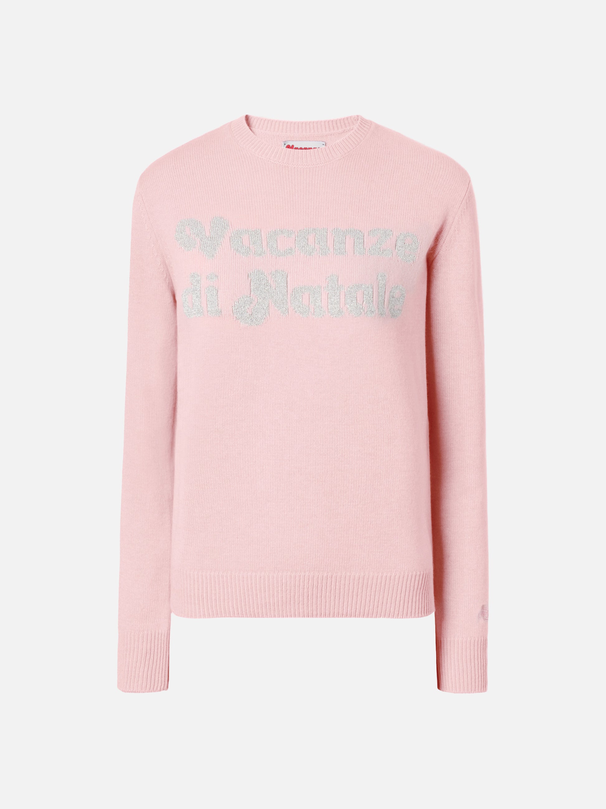 New Queen cashmere-blend sweater in pink with Vacanze di Natale lurex jacquard | VACANZE DI NATALE SPECIAL EDITION