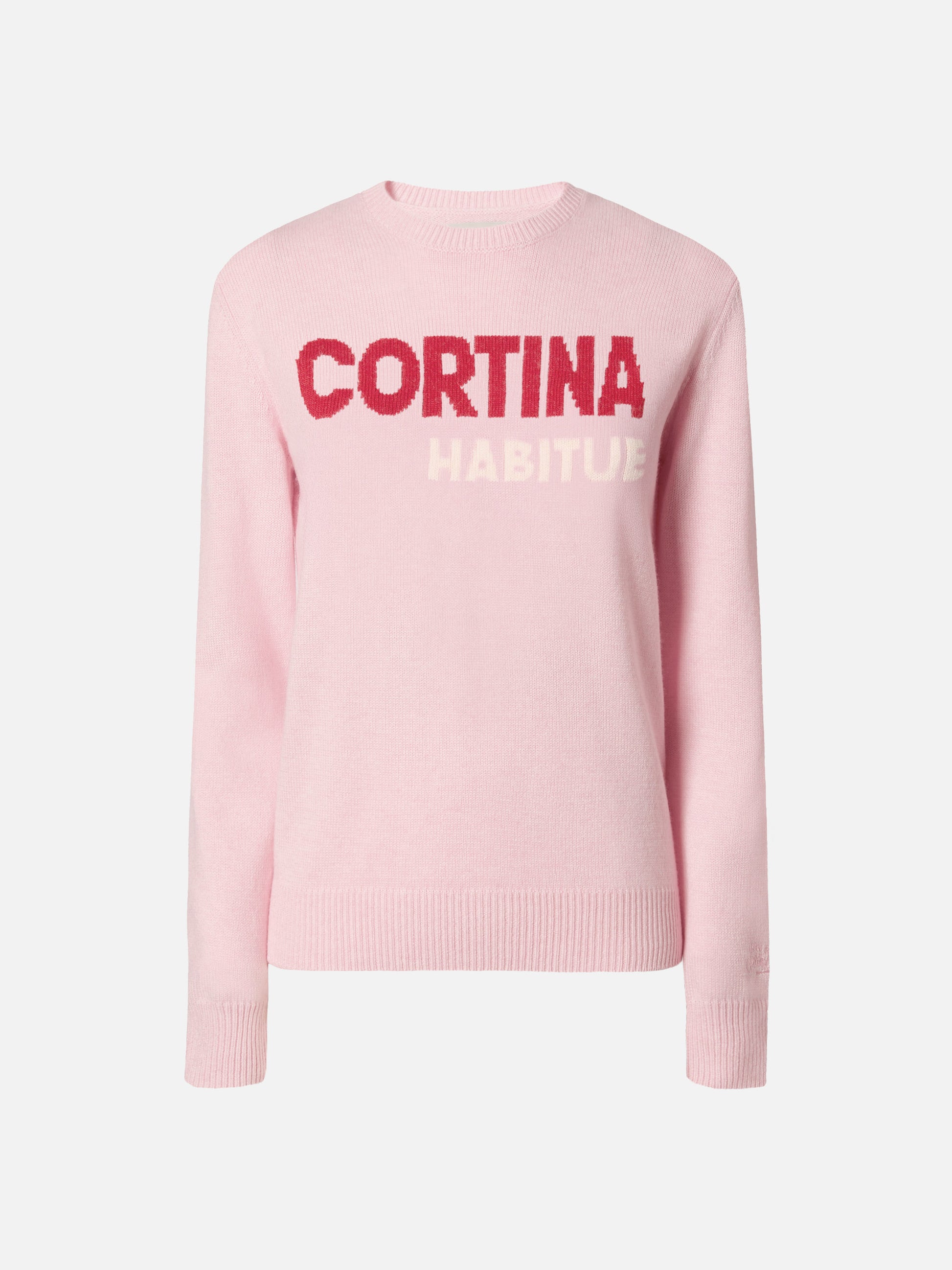 New Queen crewneck in white with Cortina habituè jacquard