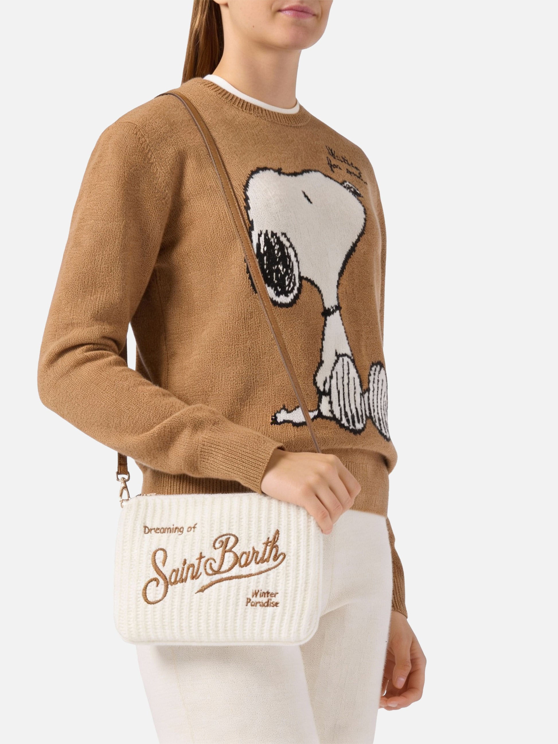 Parisienne Wool Rib Crossbody Bag in white ribbed wool blend