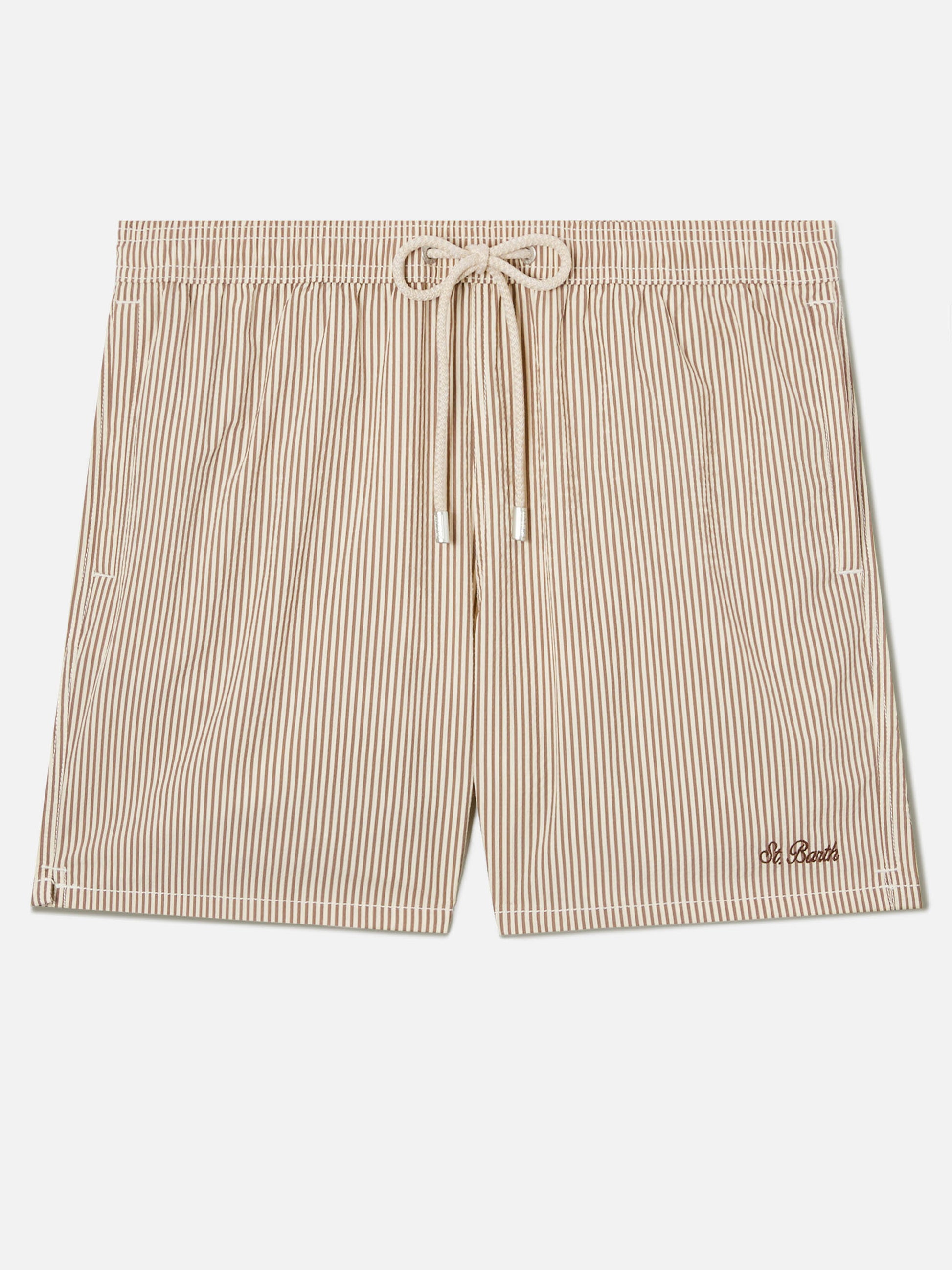 https://it.mc2saintbarth.com/en/products/patmos-seersucker-striped-swim-shorts-in-brown-and-white10775377740122Patmos seersucker striped swim shorts in brown and white129,00https:files/UID_PATM00101712L-MAN-SWIMSHORT-BROWN-MC2-MC2_1.jpghttps:files/UID_PATM00101712L-MAN-SWIMSHORT-BROWN-MC2-MC2_1.jpgEUROutOfStockSWIMSHORT650948215130All Products - Only Man649134276954AVADA - Best Sellers673887977818Dots, Stripes & Checks Swim Shorts288251543736Man - View All Swimwear635400520026Man embroidered swim shorts603845984602Man seersucker673877852506Men Print & Graphic Swim Shorts673877819738Men Quick Dry Swim Shorts673877524826Men Seersucker Swim Shorts673877360986Men Swim Shorts628483424602Patmos man swim shorts603371077978Swimshorts All654689960282UpSelling_Man_Swimshorts278956736696View All Micro Printed Swim ShortsThe Patmos swim shorts are crafted from lightweight breathable seersucker fabric designed to provide comfort and freedom of movement. The striped pattern defines the style with a fresh and distinctive look, enhanced by the logo embroidery on the leg. The mid-length cut and elasticated drawstring waistband ensure a comfortable regular fit. Functional details such as side welt pockets, an internal side zip pocket and a back pocket with flap and velcro closure with water drainage eyelet enhance practicality. The elastic antibacterial inner mesh completes the design, ensuring comfort and breathability.