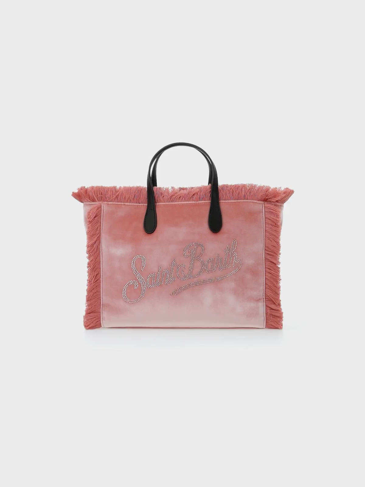 Pink velvet Colette handbag with rhinestones logo