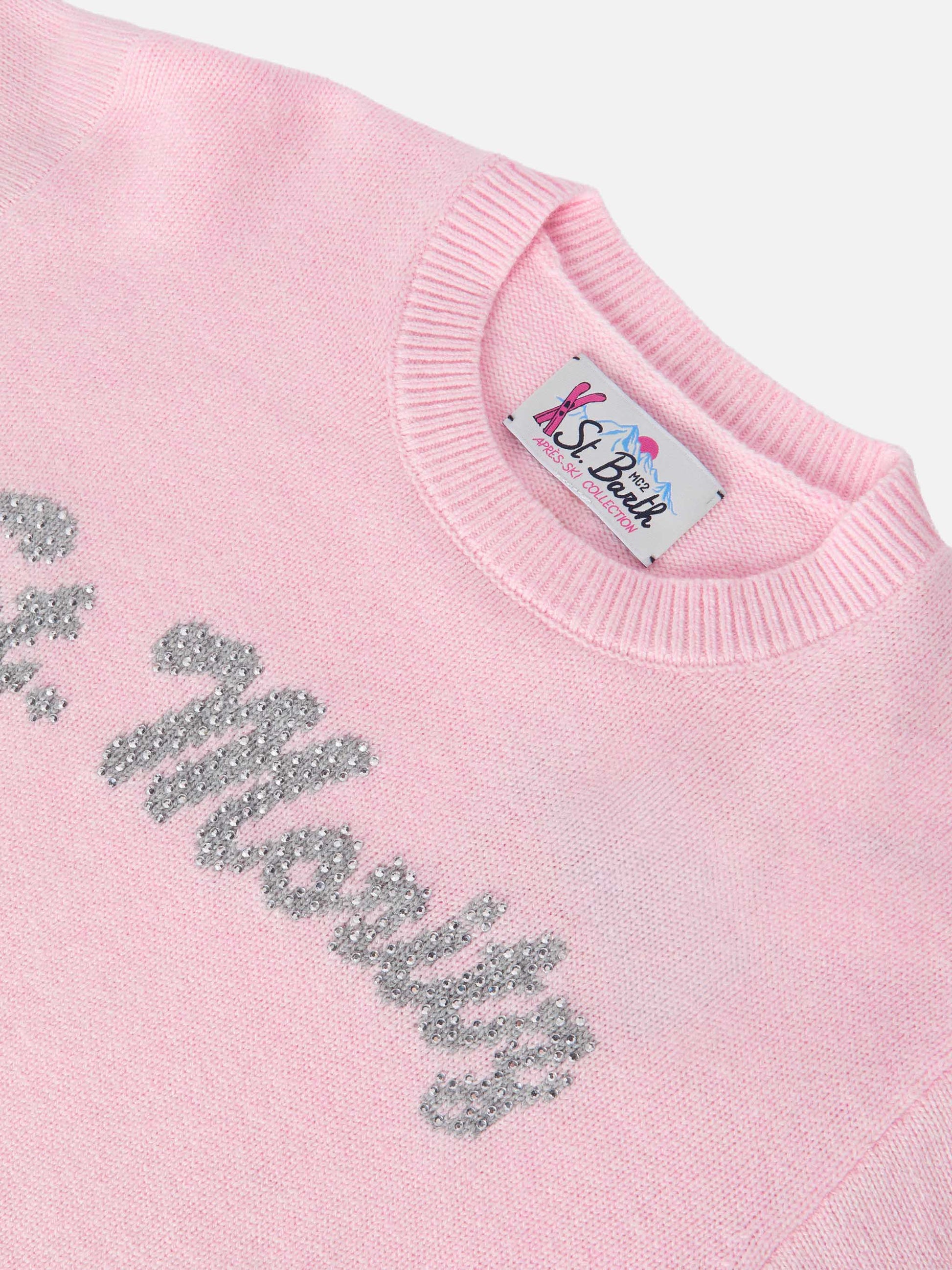 Sweater Louise Jr in cashmere blend with St. Moritz graphic in rhinestones | ST. MORITZ TOP OF THE WORLD