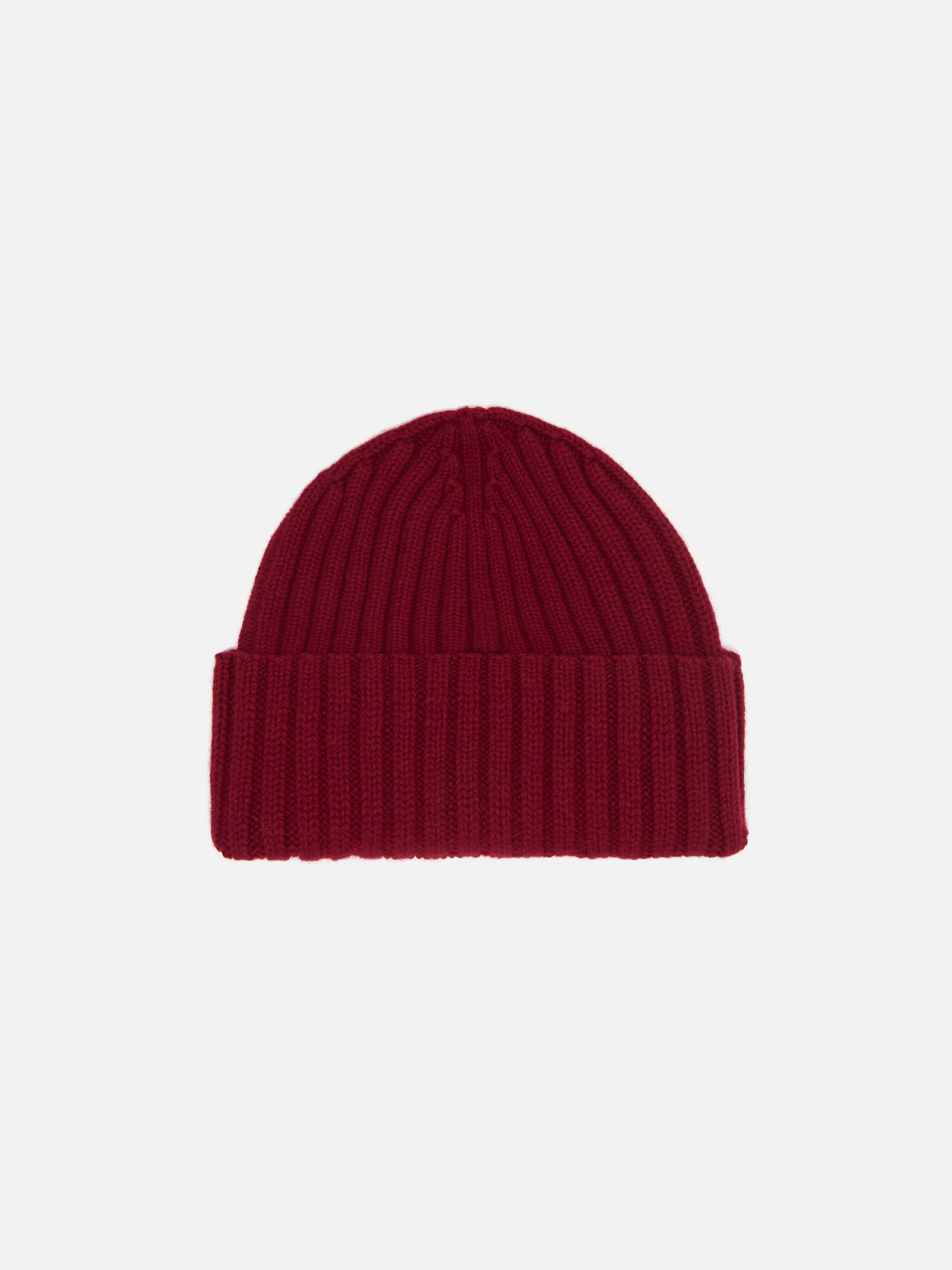 Wengen beanie in burgundy with St. Barth embroidery on the turn-up