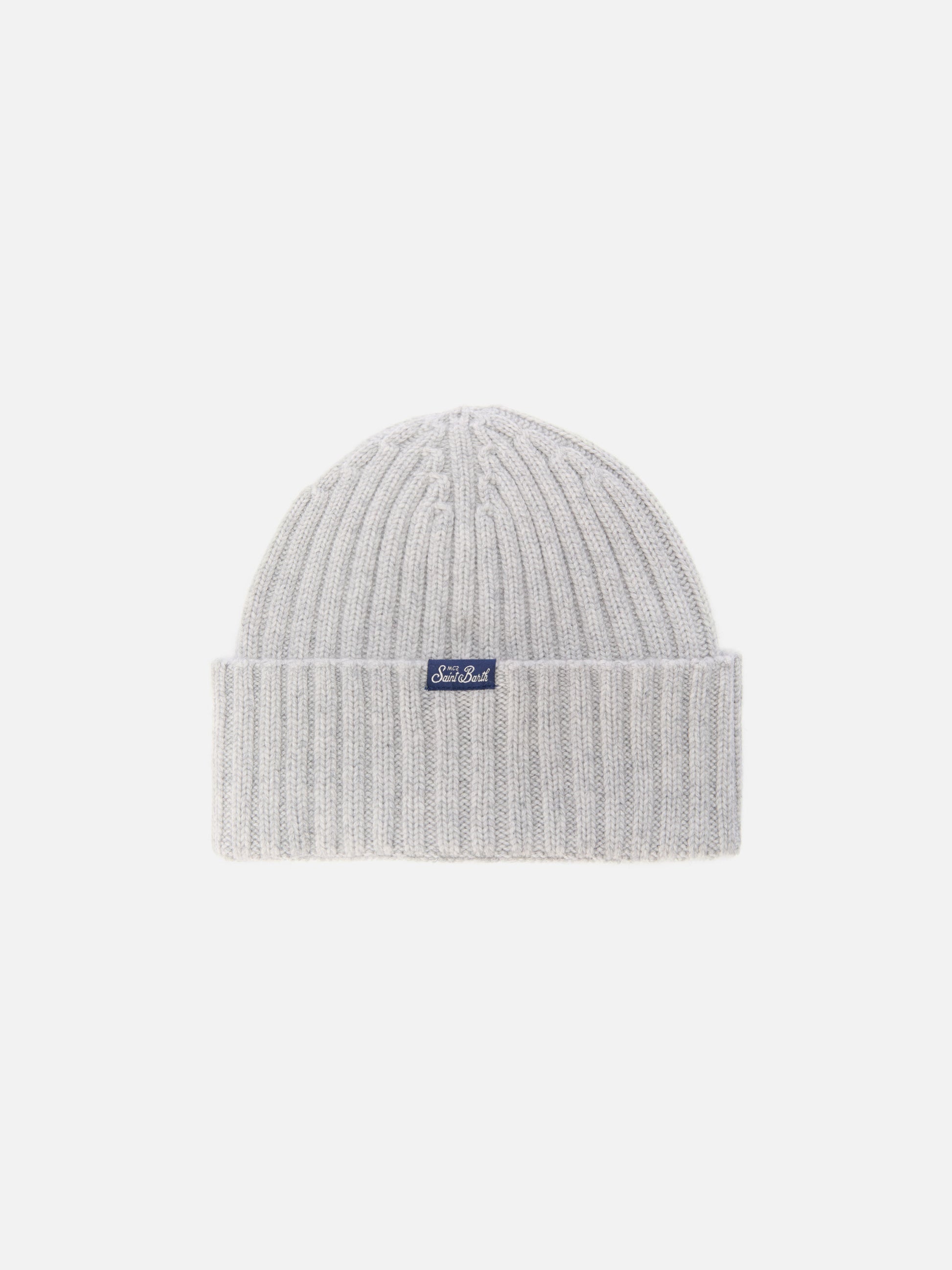Wengen beanie in cashmere blend in grey with Campiglio embroidery