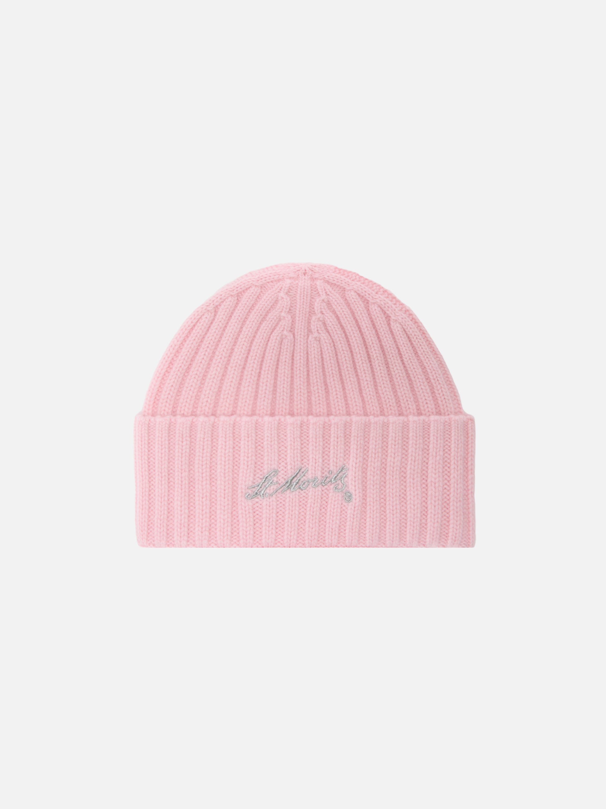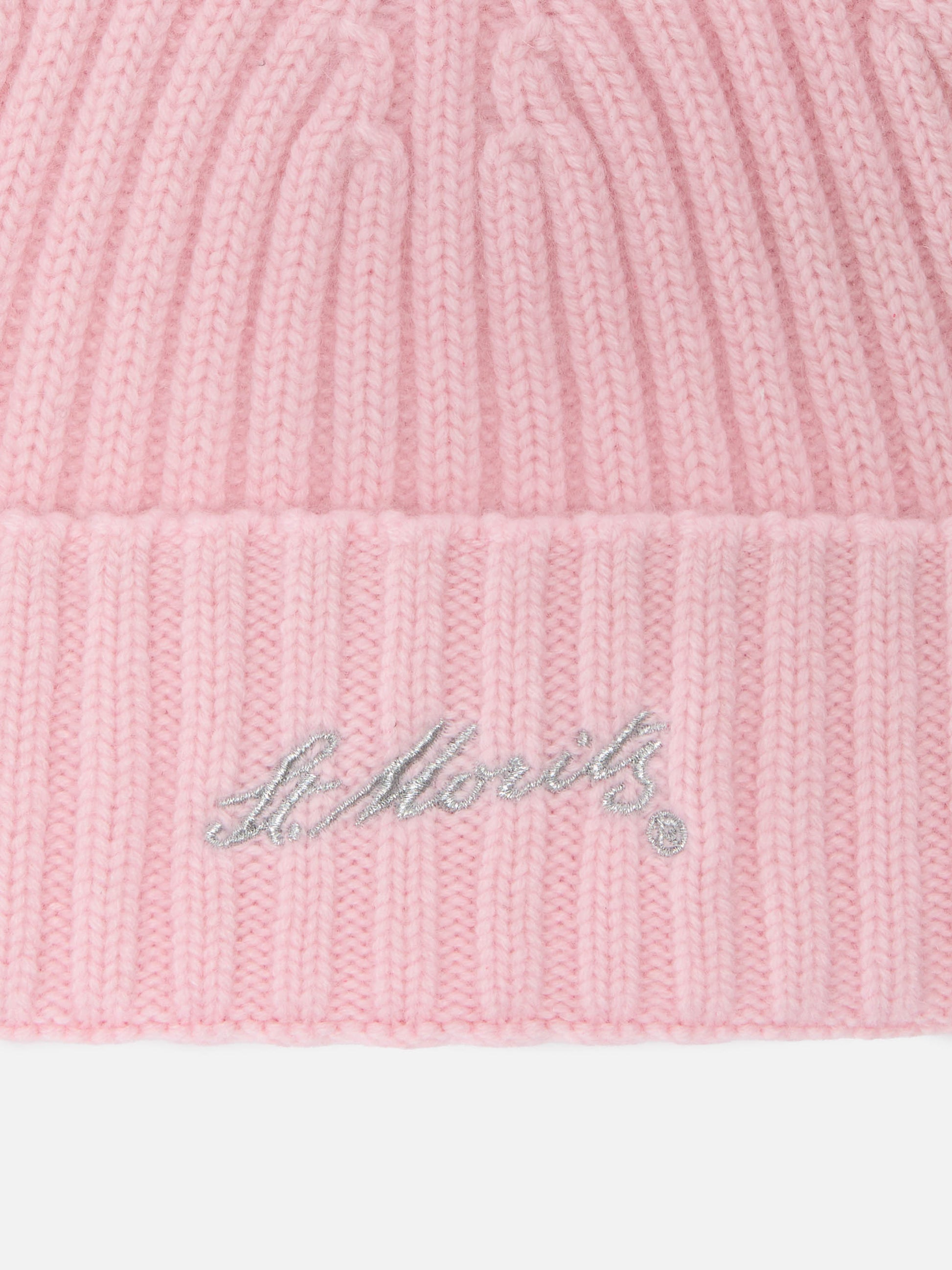 Wengen beanie in pink cashmere with St. Moritz embroidery