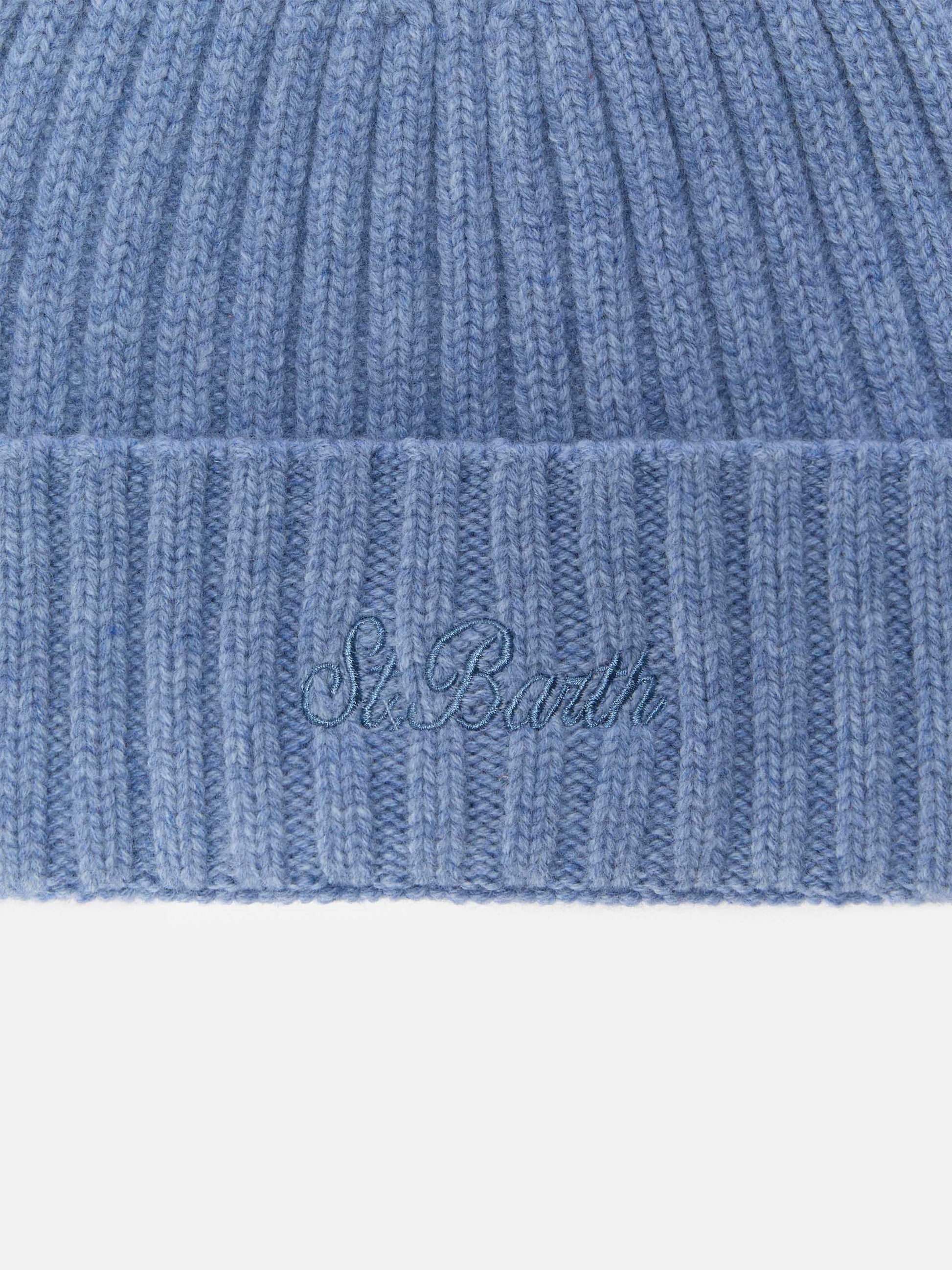 Wengen beanie in powder blue with St. Barth embroidery on the turn-up