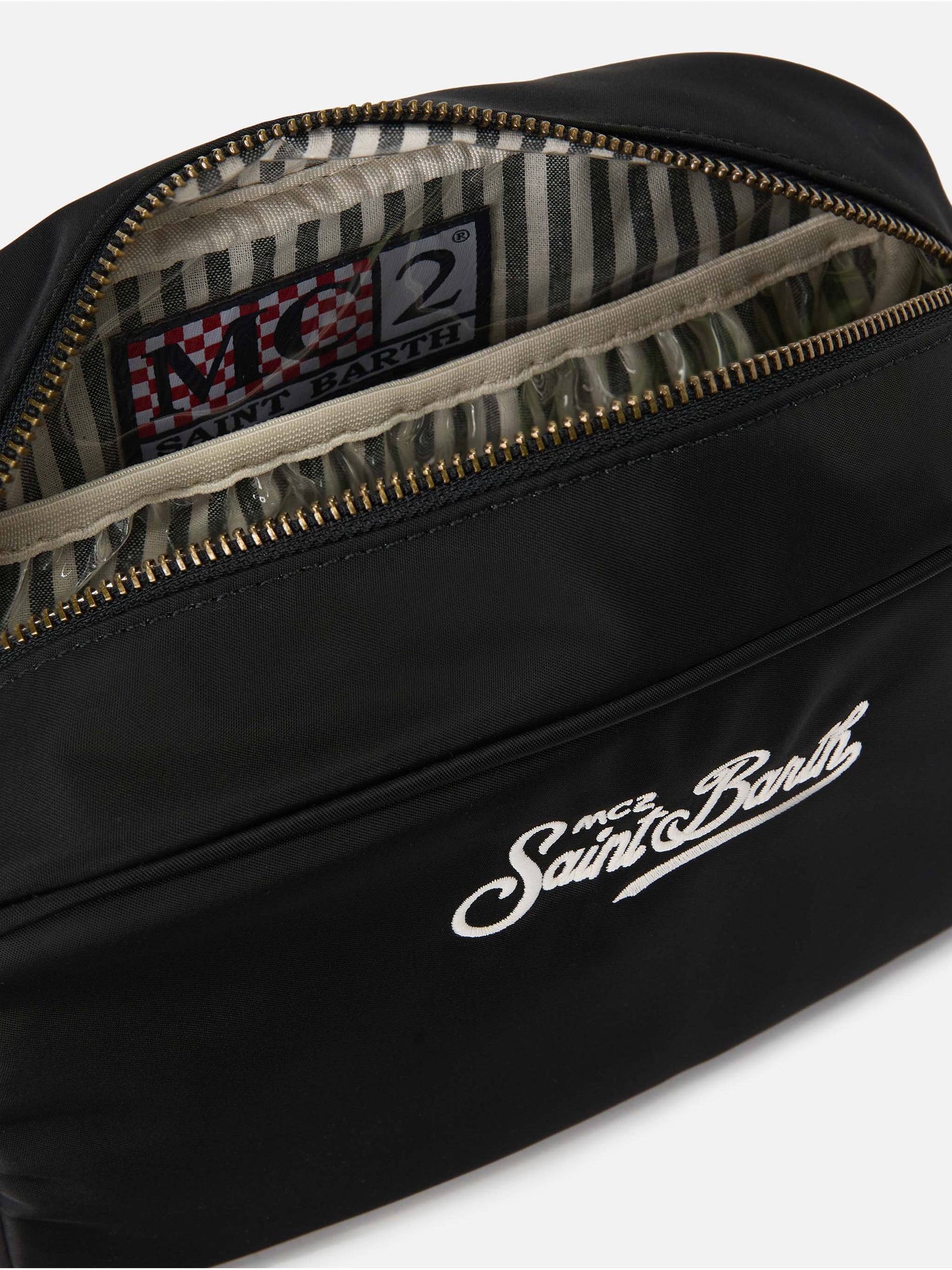 https://it.mc2saintbarth.com/en/products/westwood-black-nylon-beauty-bag10743816782170Westwood black nylon beauty bag79,00https:files/UID_WES001001265L-ACCESSORY-POCHETTE-BLACK-PLAINCOLOR-MC2_1.jpghttps:files/UID_WES001001265L-ACCESSORY-POCHETTE-BLACK-PLAINCOLOR-MC2_1.jpgEURInStockPOCHETTE649134276954AVADA - Best Sellers288708395192Bags - View All278950936760Pochette - View All672828096858St. Barth Sports Club - Him and Her278948184248Travel AccessoriesThe Westwood beauty bag is crafted from nylon, ideal for organizing your essentials during travel or everyday use. The beige solid color design is enhanced by a contrasting embroidered logo and coordinated details. The lined interior with waterproof TPU provides extra protection, while the zip closure and side handle ensure practicality and comfort.