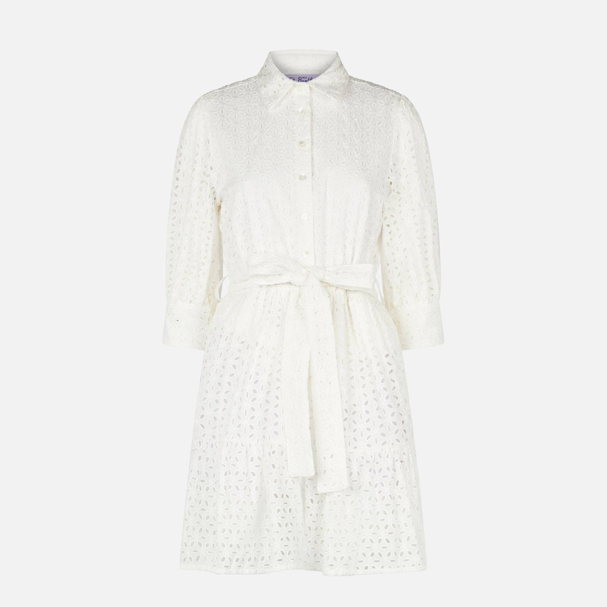 White cotton short dress Daisi with embroideries