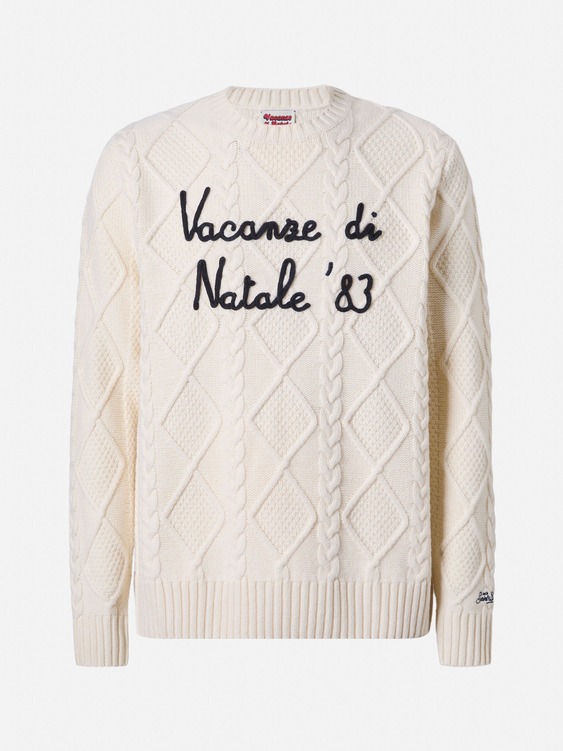 White crewneck sweater Bergen Tricot with Vacanze di Natale '83 embroidery