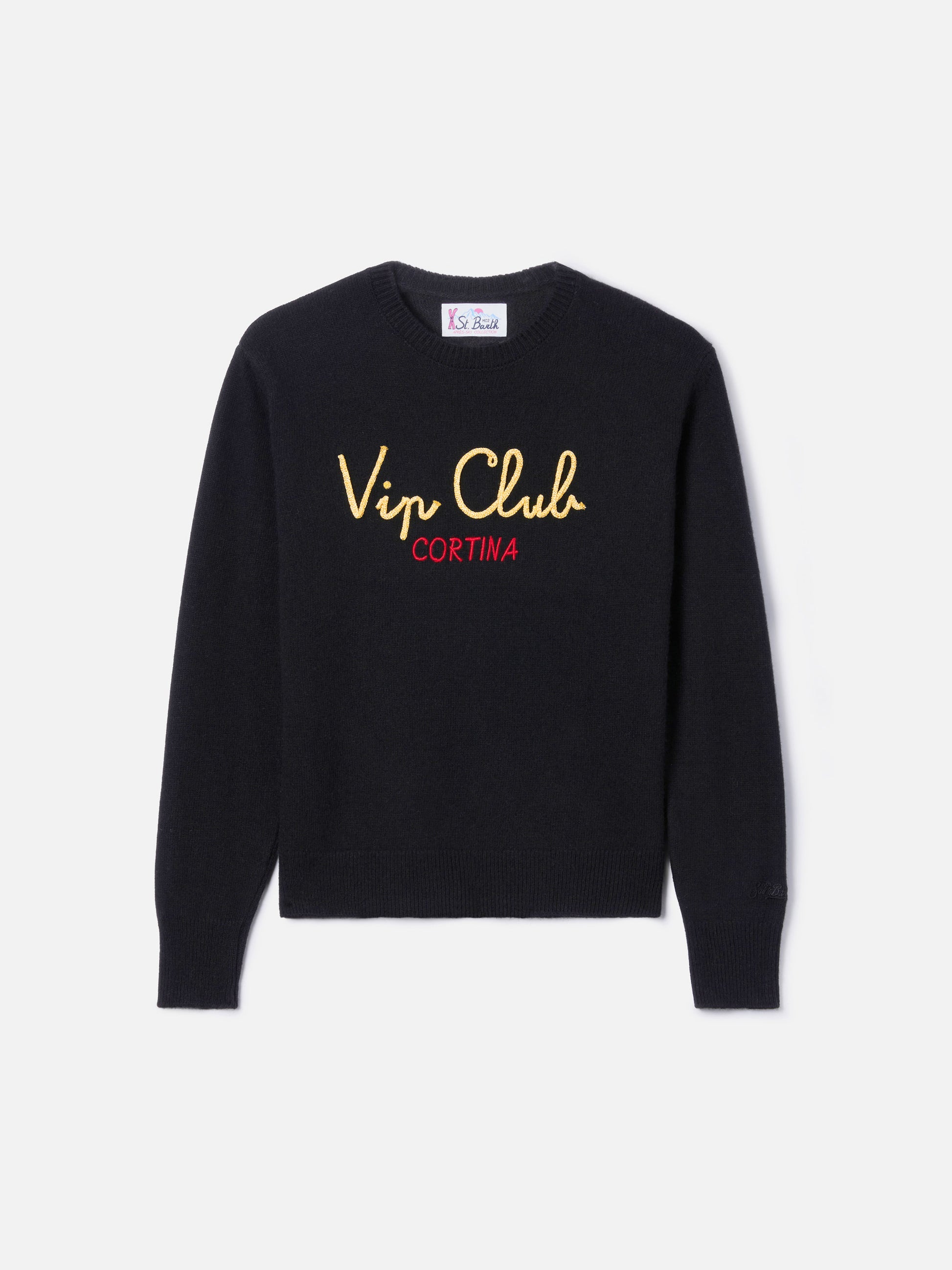 Woman black sweater New Queen with embroidery Vip club Cortina | VIP CLUB CORTINA SPECIAL EDITION