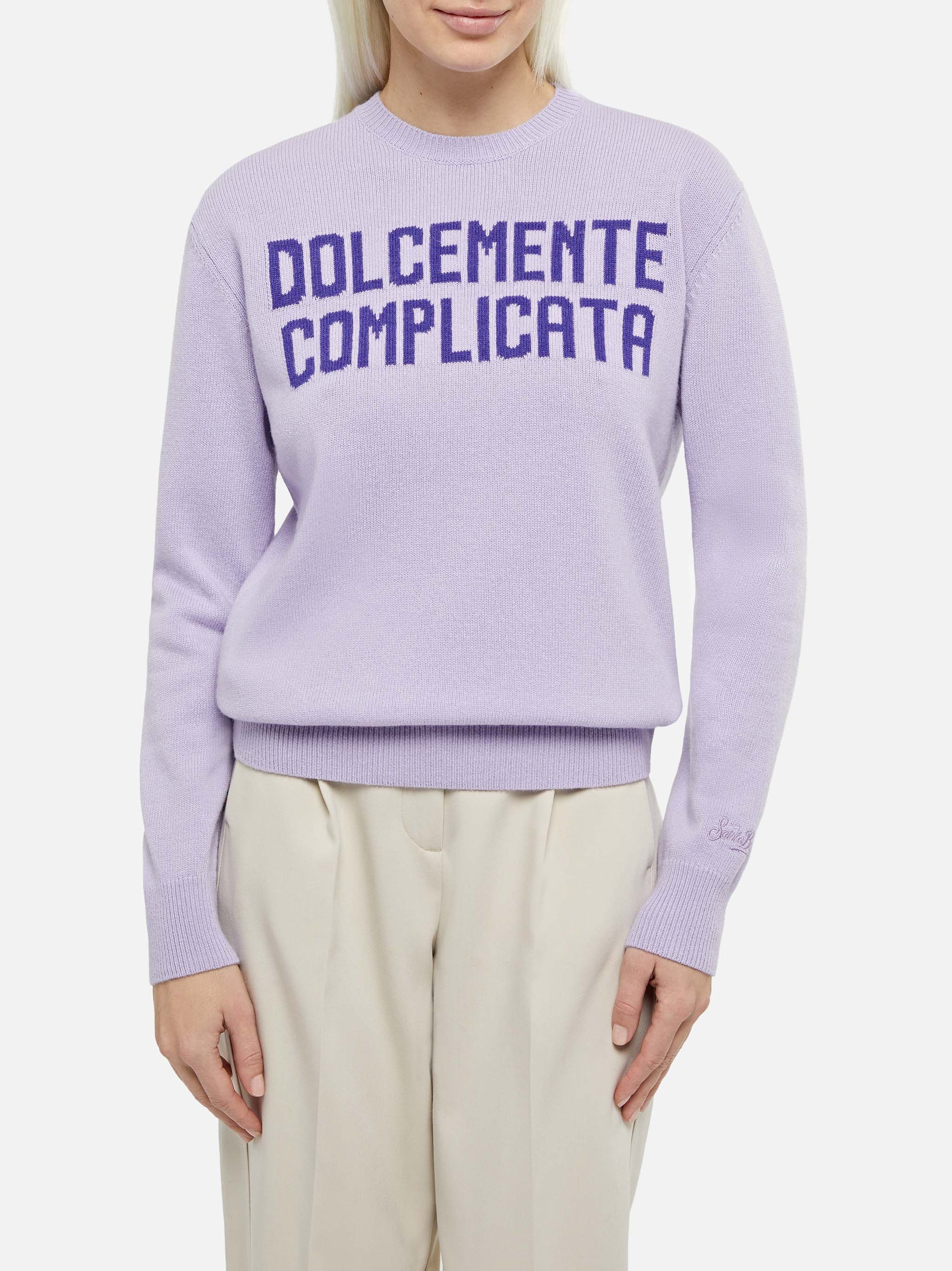 Woman purple sweater New Queen with Dolcemente Complicata print