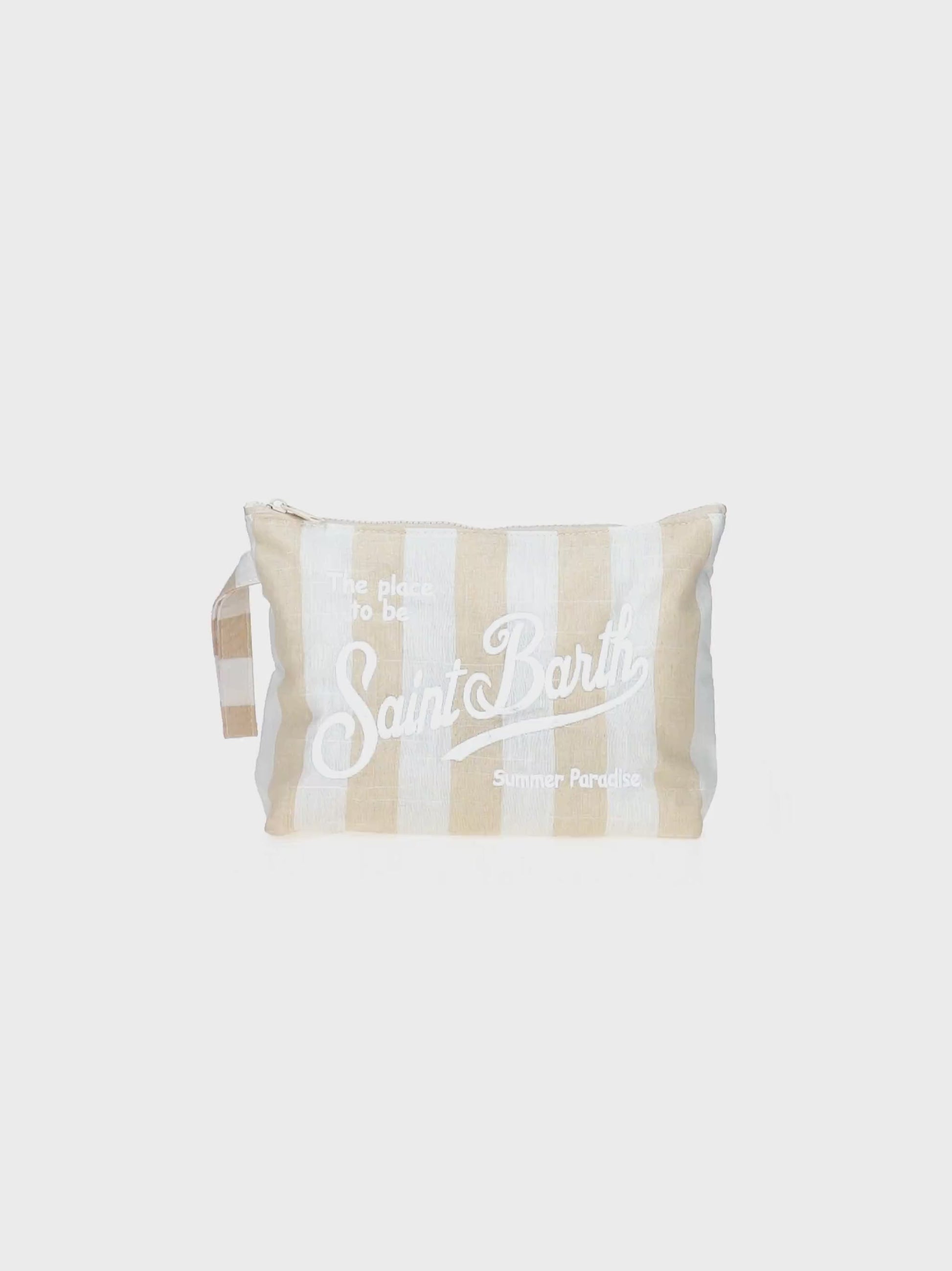 Pochette Aline Soft L in cotone e lino con stampa a righe