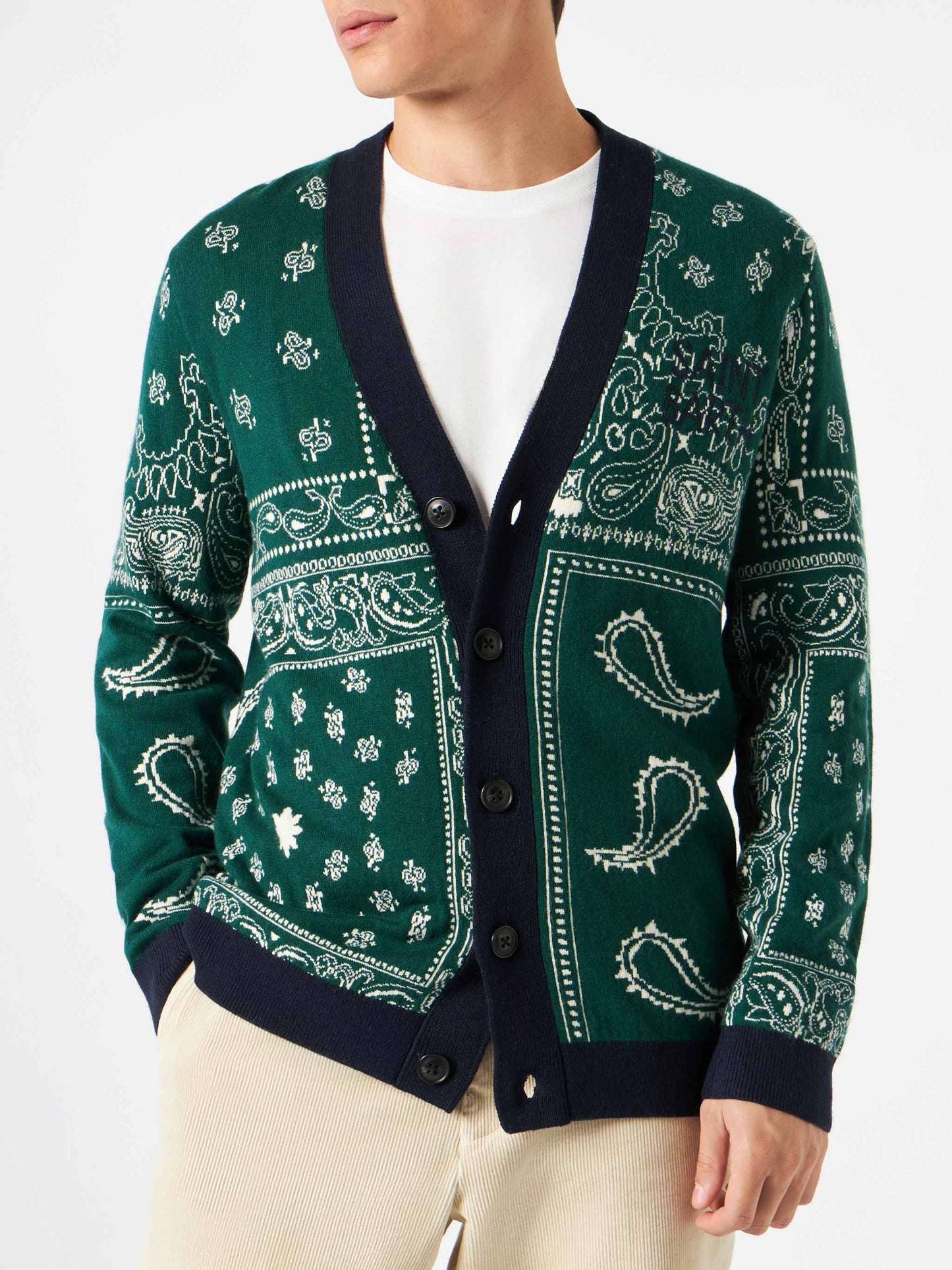Cardigan Bandanna in maglia verde scuro con ricamo Saint Barth