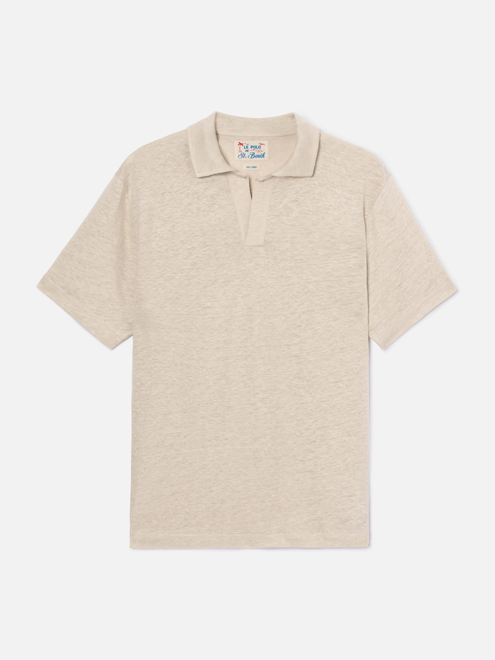 Polo Fraser in puro lino beige tinta unita