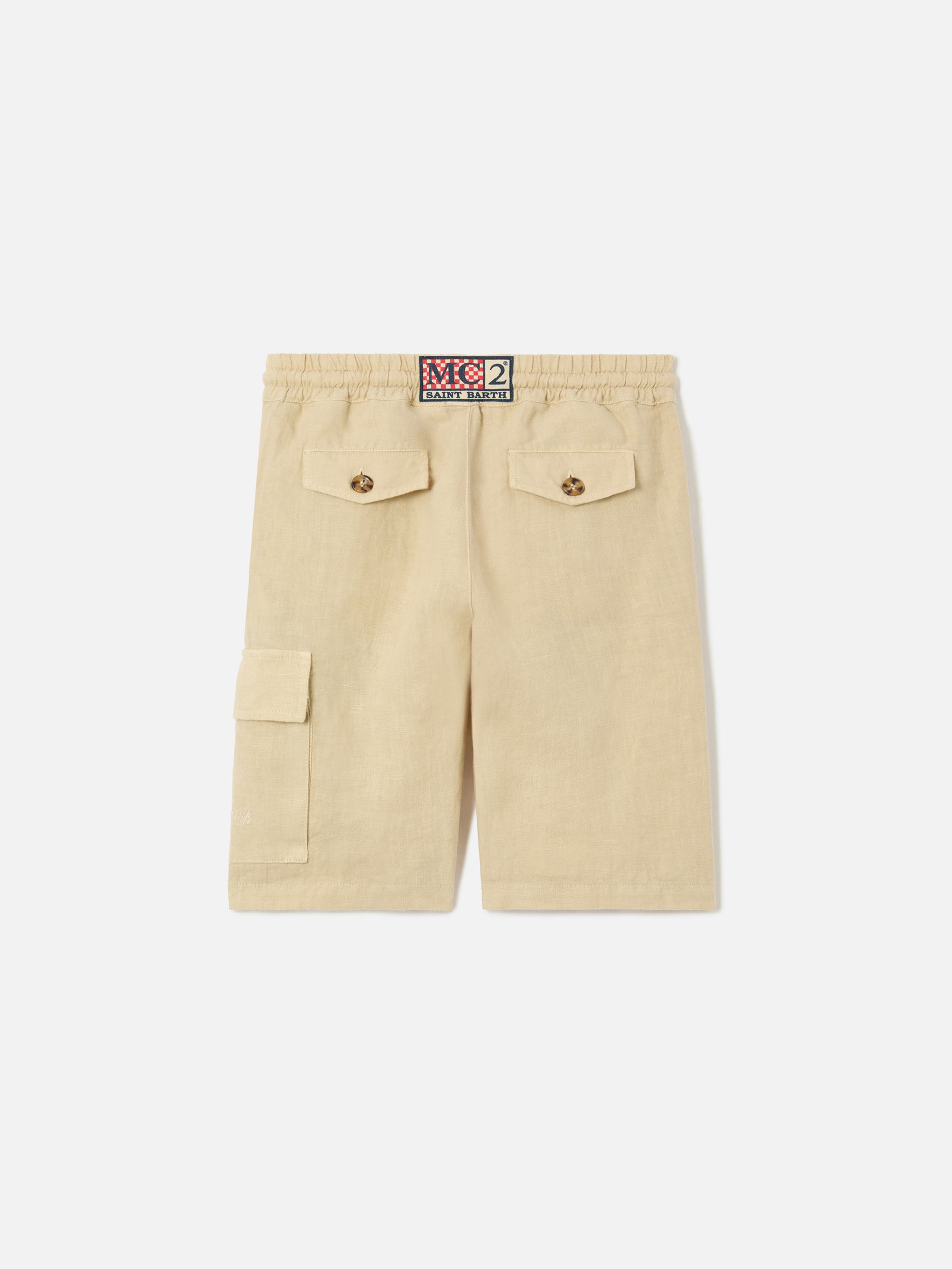 https://it.mc2saintbarth.com/it/products/beige-marseille-jr-shorts-in-linen10790805569882Shorts Marseille Jr in lino beige129,00https:files/UID_MRE000101139L-BOY-SHORTPANT-BROWN-MC2-MC2_1_27a0fb1b-34c5-4947-bba6-c7365bdd0c15.jpghttps:files/UID_MRE000101139L-BOY-SHORTPANT-BROWN-MC2-MC2_1_27a0fb1b-34c5-4947-bba6-c7365bdd0c15.jpgEURInStockSHORT PANT649134276954AVADA - Bestseller280554733752Bermuda e Pantaloni Bambino622399291738Collezione in Lino da bambino Gli shorts Marseille Jr da bambino sono realizzati in puro lino, un tessuto leggero e traspirante. Il colore beige tinta unita definisce uno stile pulito e fresco. Il modello presenta vita elasticizzata con coulisse in corda intrecciata con dettaglio a contrasto, tasche laterali sul davanti e tasche posteriori con aletta e bottone logato. Sul lato è applicata una tasca cargo con ricamo St. Barth tono su tono. Completa il capo l’etichetta logata applicata sul retro della cintura. La costruzione garantisce una vestibilità regolare.