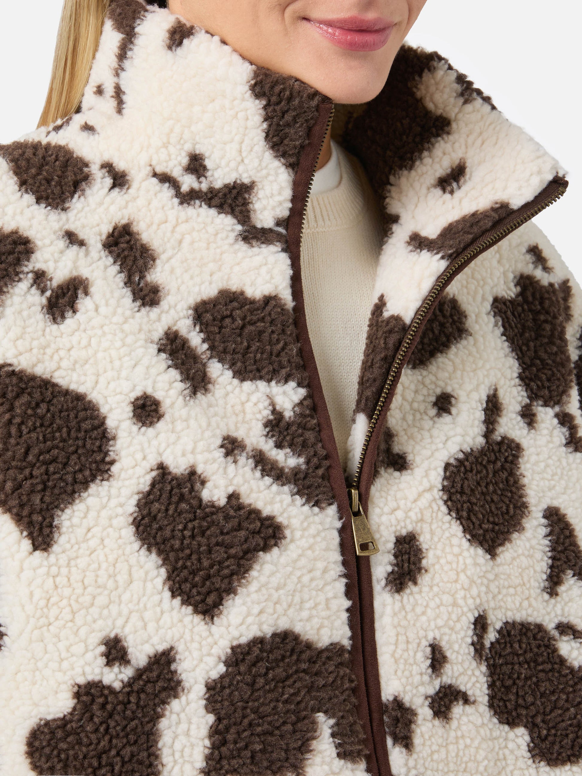 Giacca teddy Bercy con stampa muccata e dettagli in eco suede