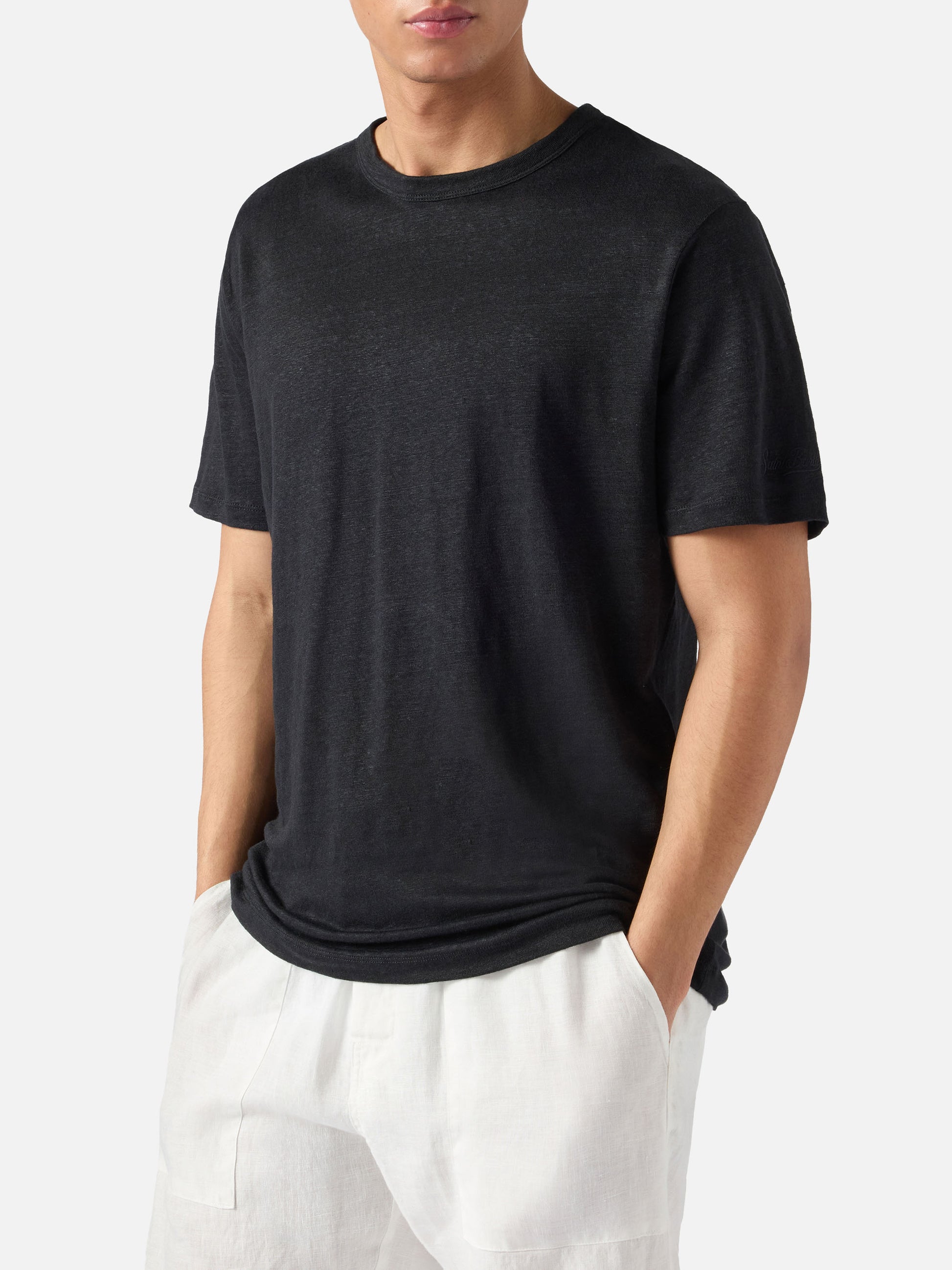 T-shirt Ecstasea in puro lino nero con logo ricamato