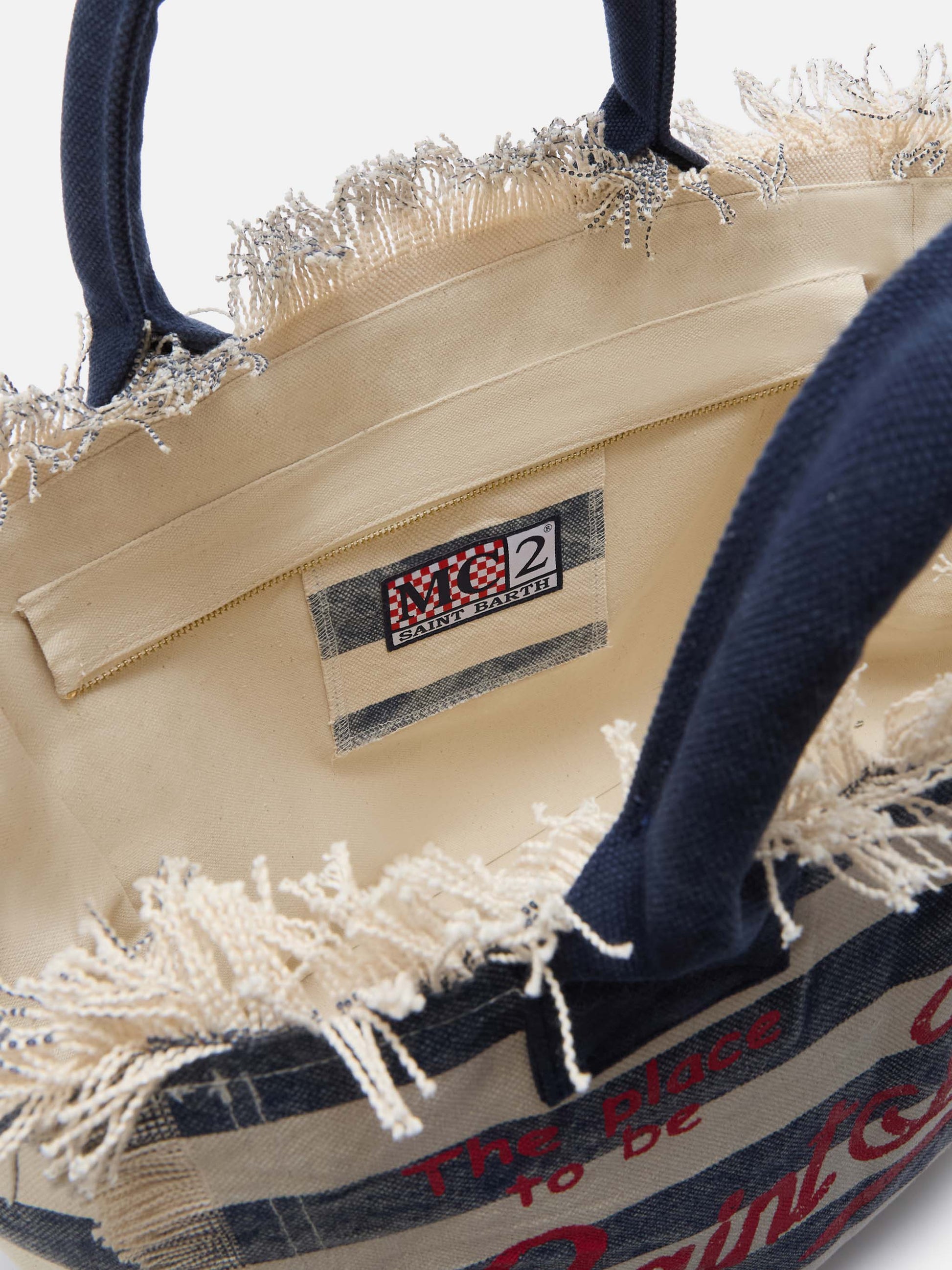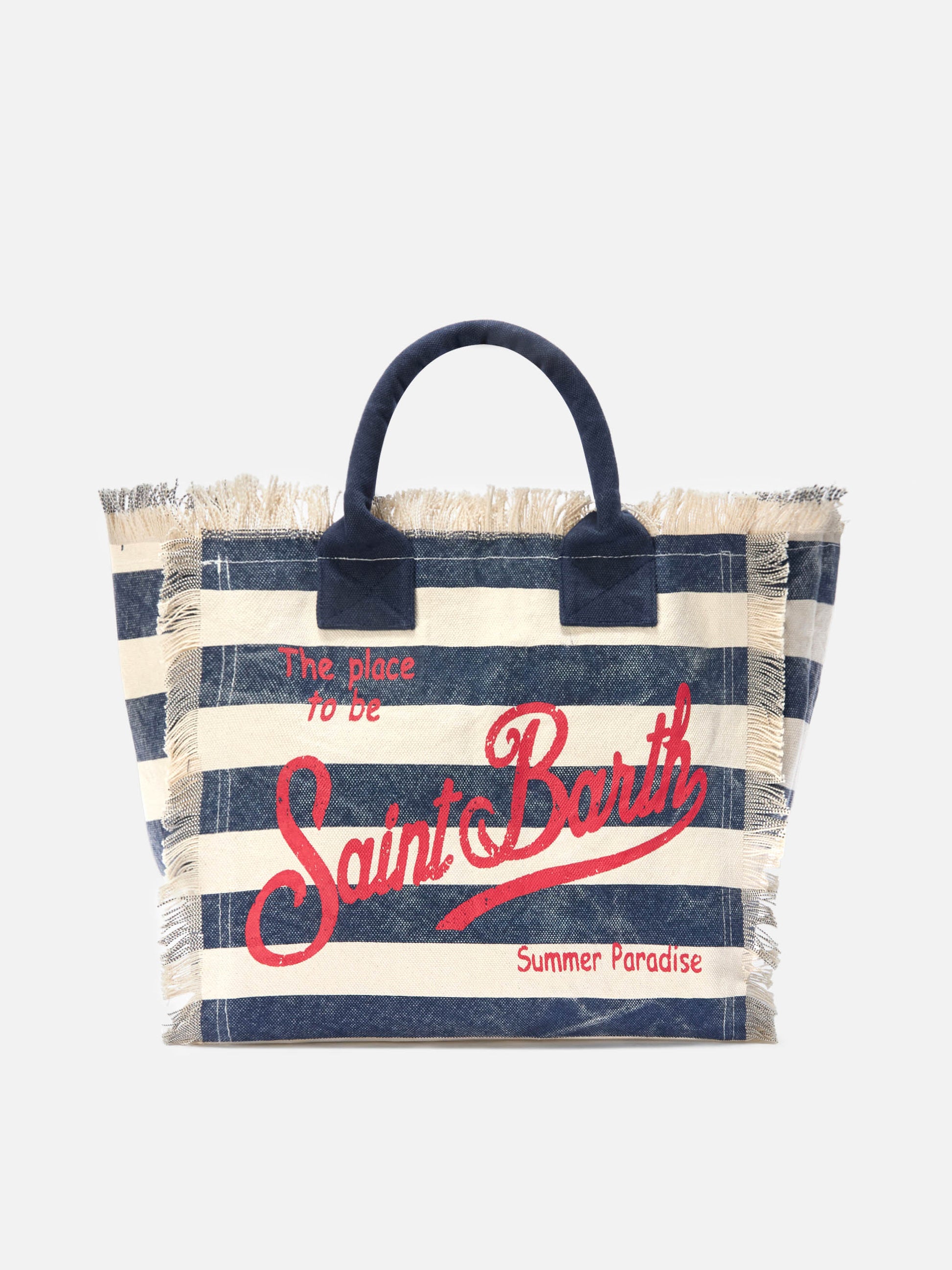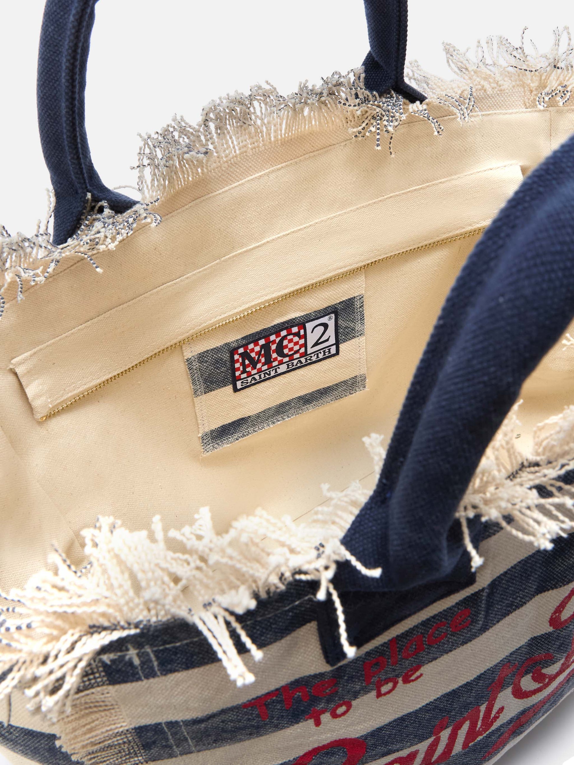 Borsa Vanity regular in canvas a righe orizzontali blu