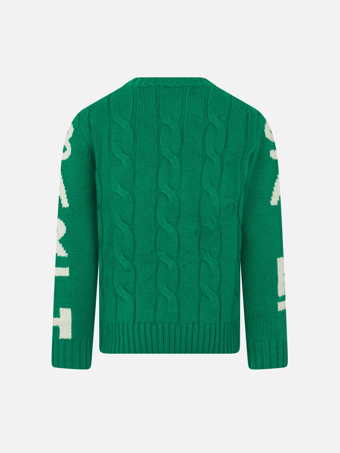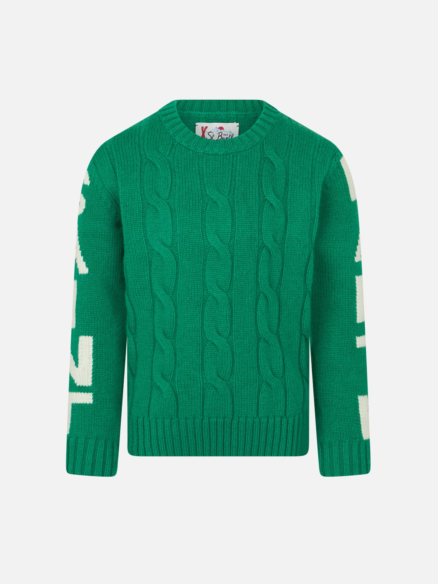 Maglione girocollo intrecciato da bambino con stampa Saint Barth