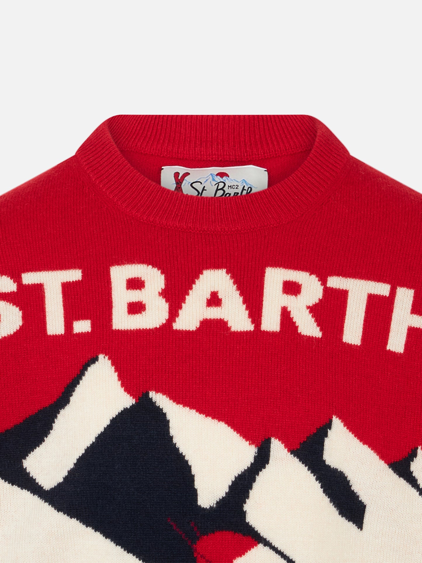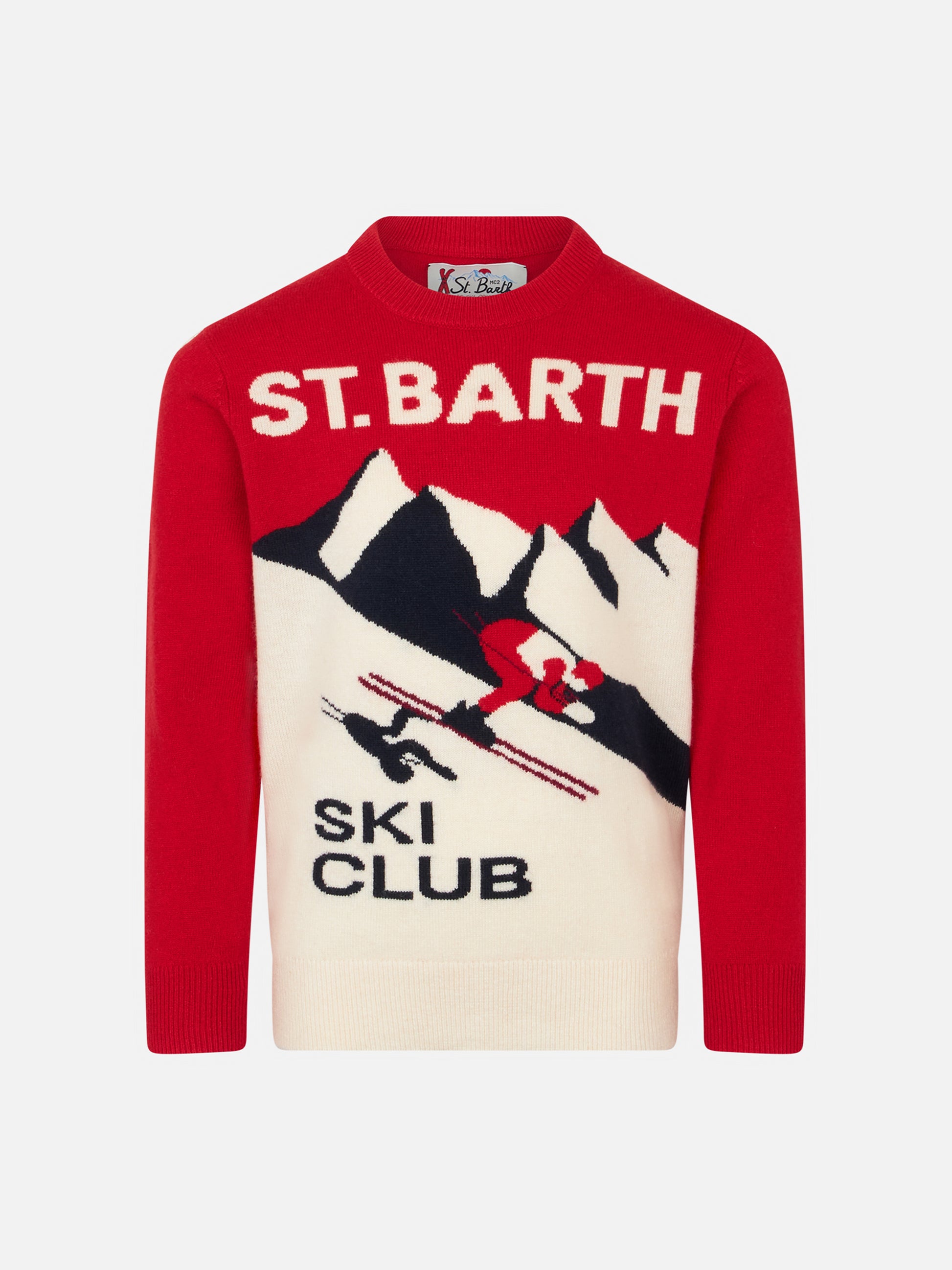 Maglione da bambino girocollo con stampa jacquard cartolina St. Barth Ski Club