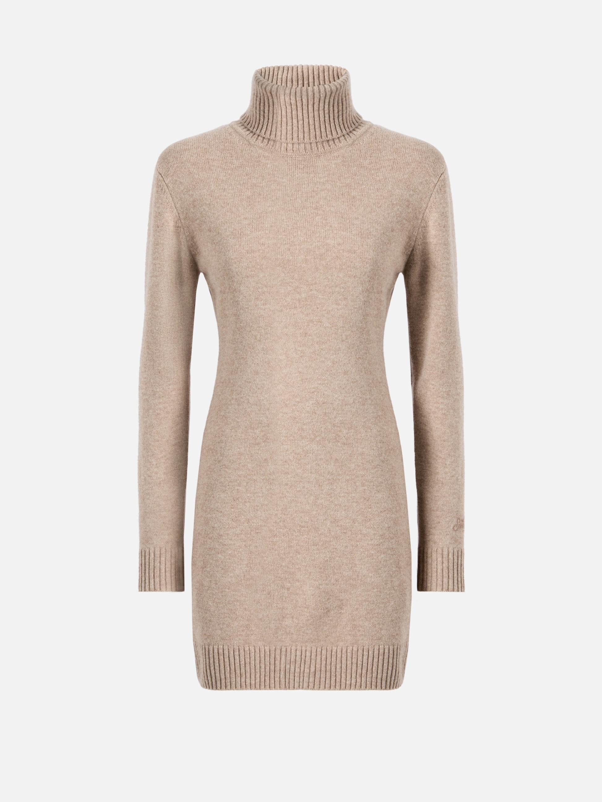 Berretto Wengen in lana beige con ricamo St. Barth sul risvolto