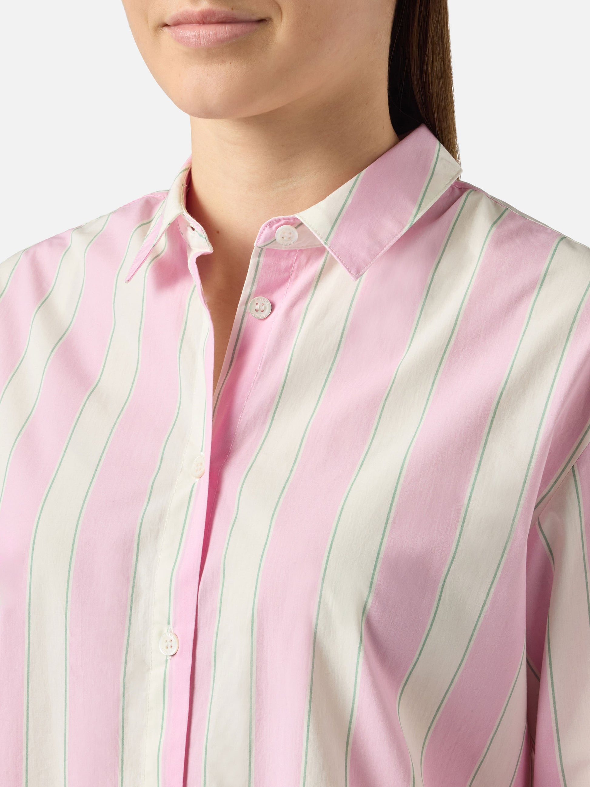 Camicia Brigitte in cotone a righe rosa con ricamo Sport Club