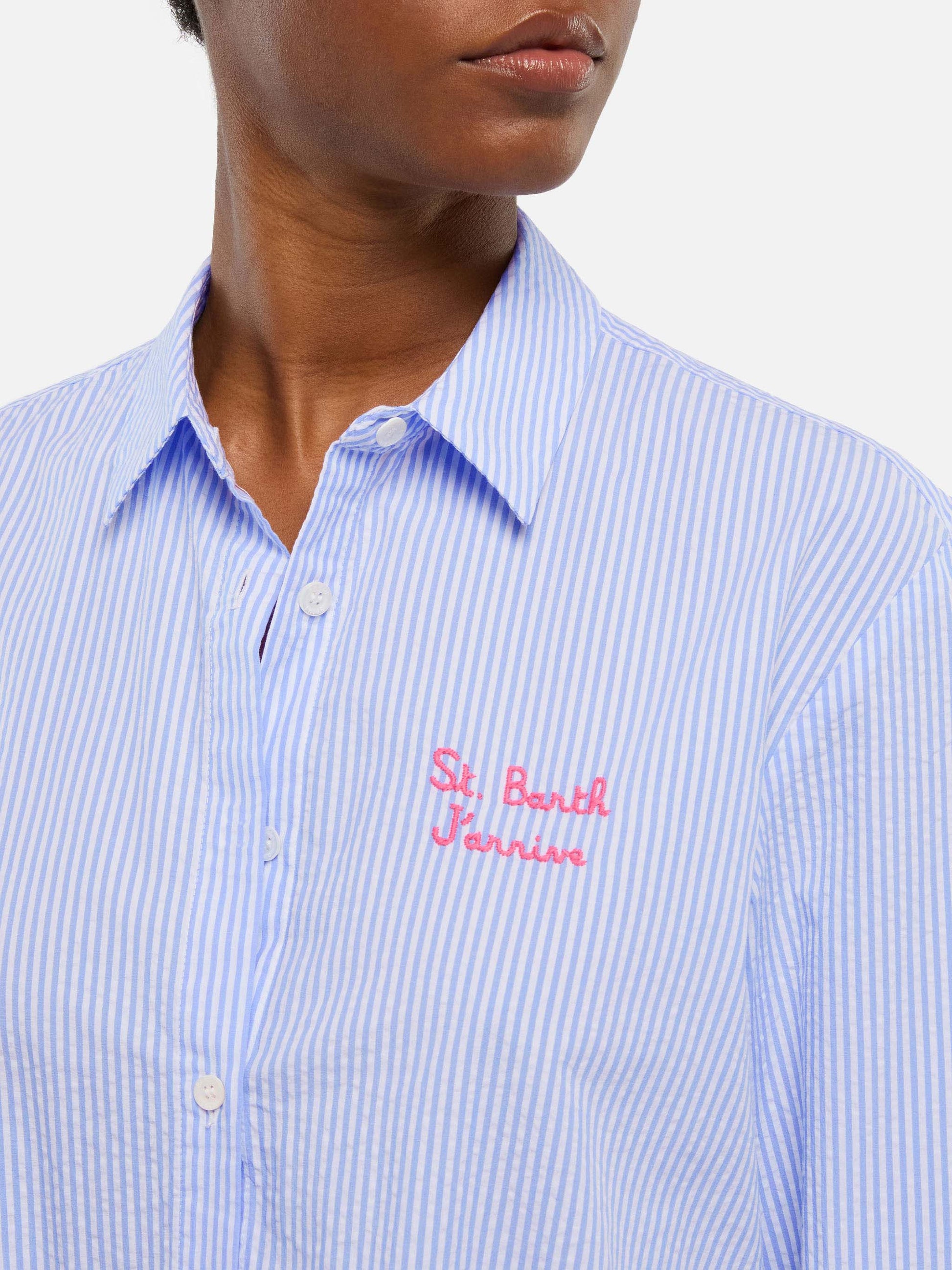 Brigitte camicia in seersucker a righe con stampa Snoopy