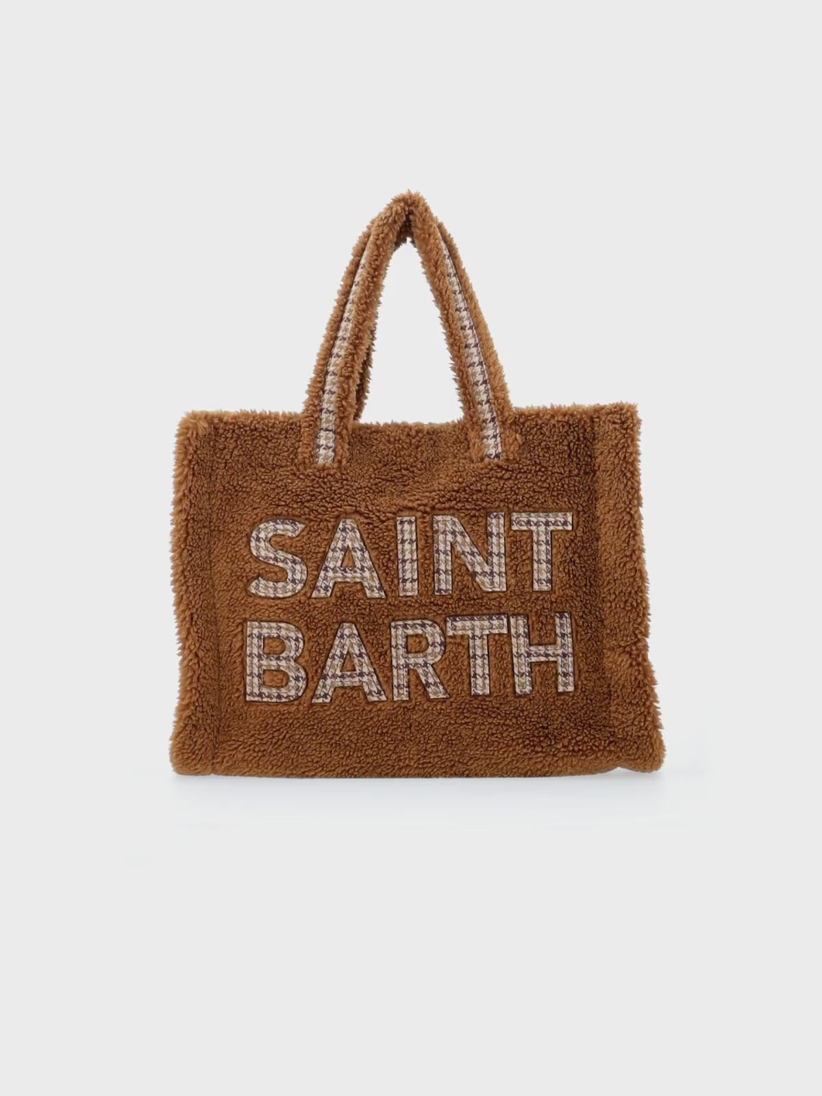 Borsa morbida in peluche marrone con logo a scacchi Saint Barth