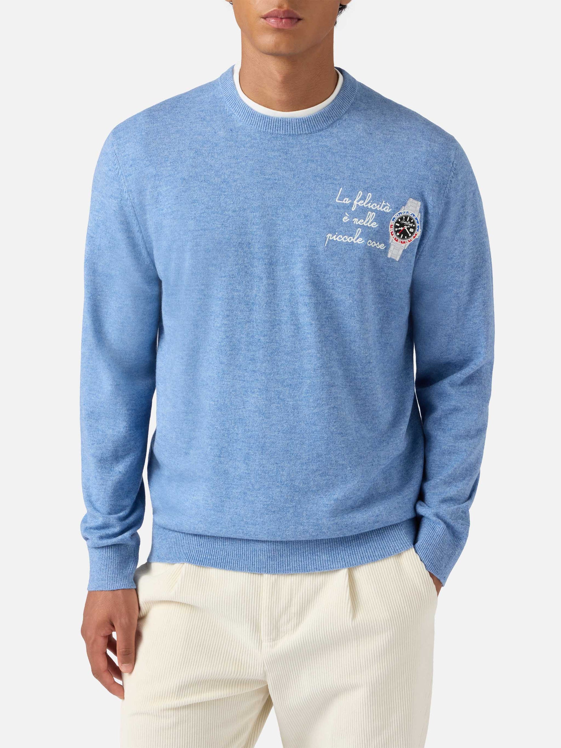 Maglione a girocollo Heron Light con ricamo La felicità è nelle piccole cose