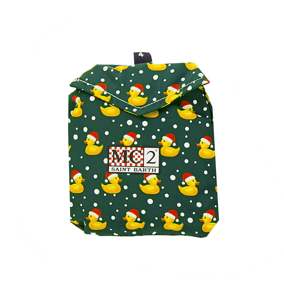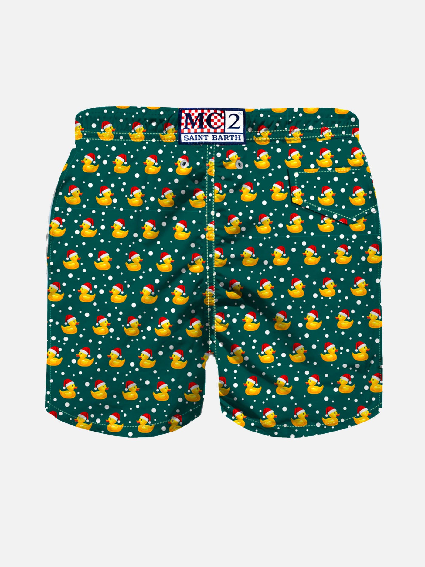 Costume da bagno da bambino in tessuto leggero con stampa papera natalizia