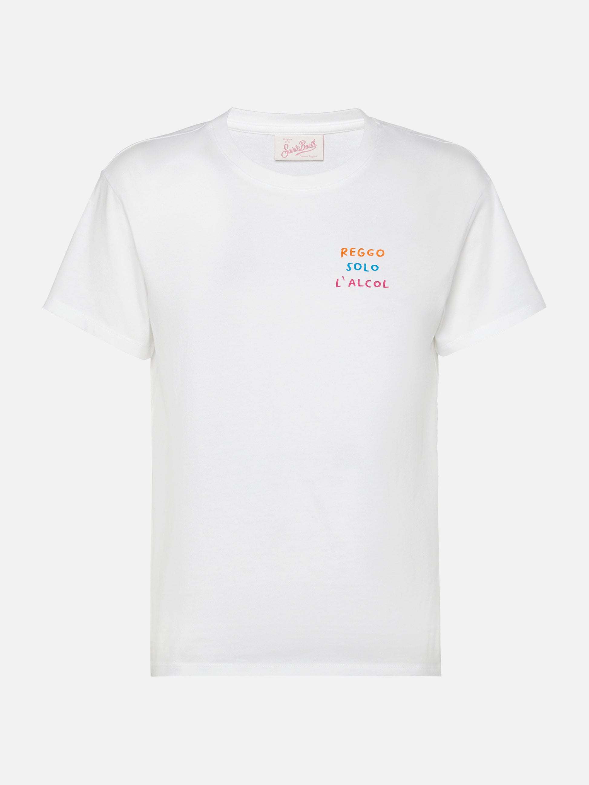 Emilie t-shirt in cotone con ricamo Reggo solo alcool