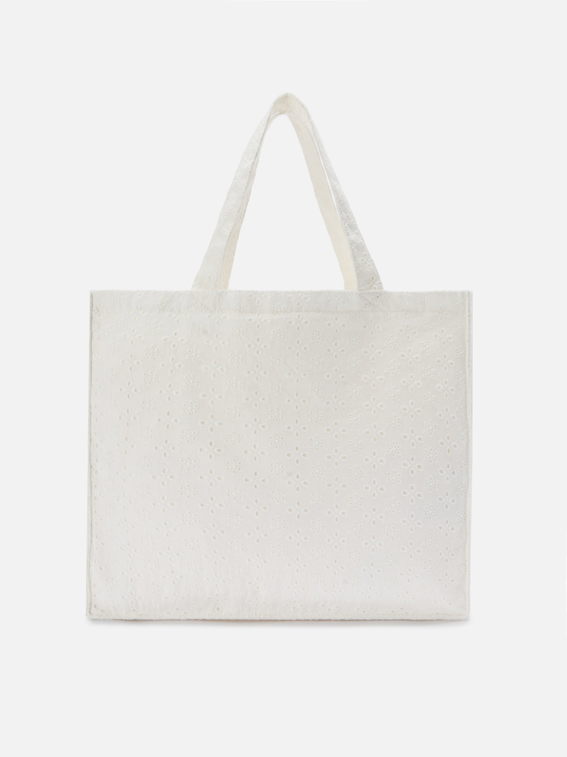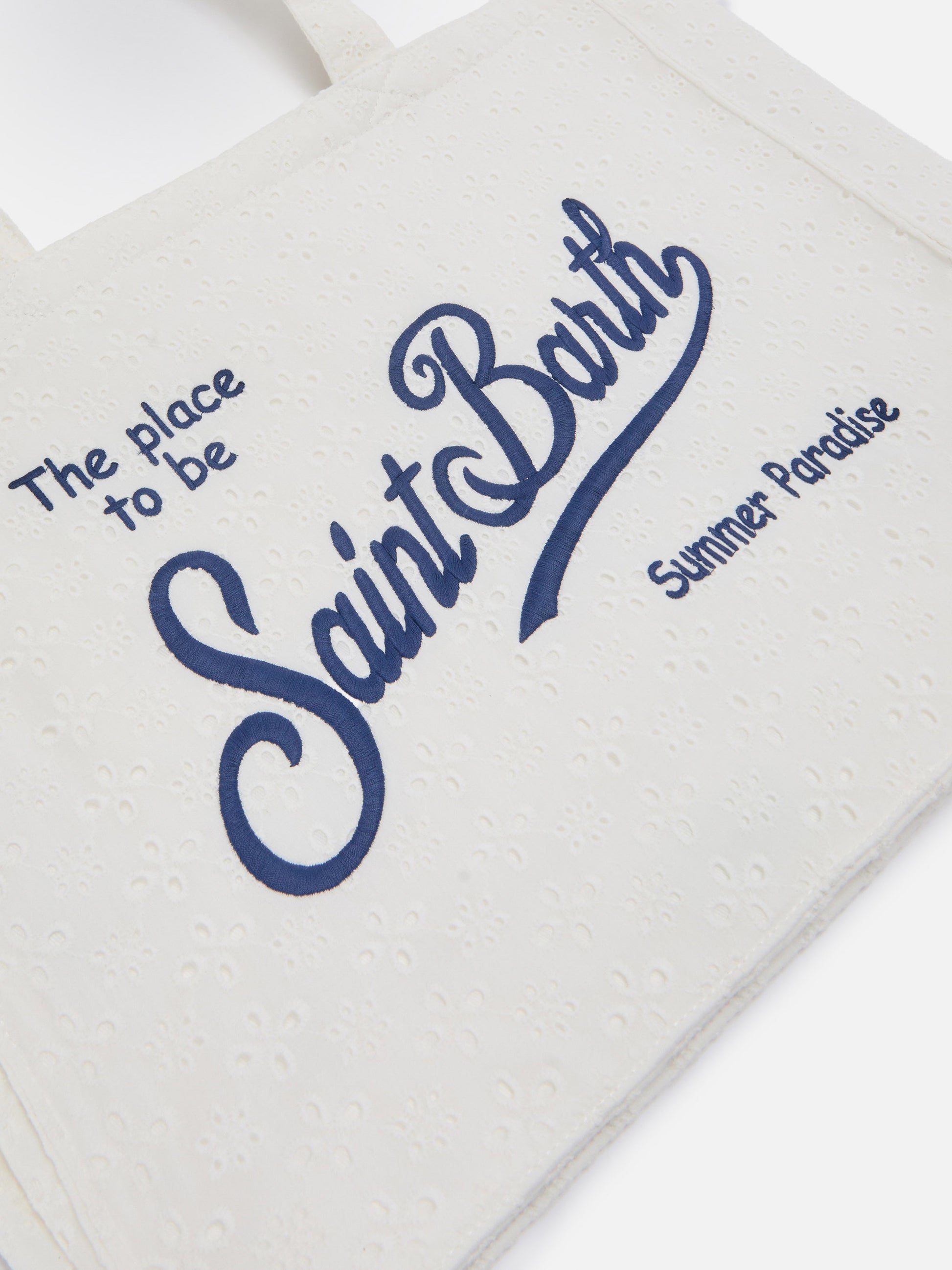 Borsa Essential in cotone sangallo bianco con logo a contrasto