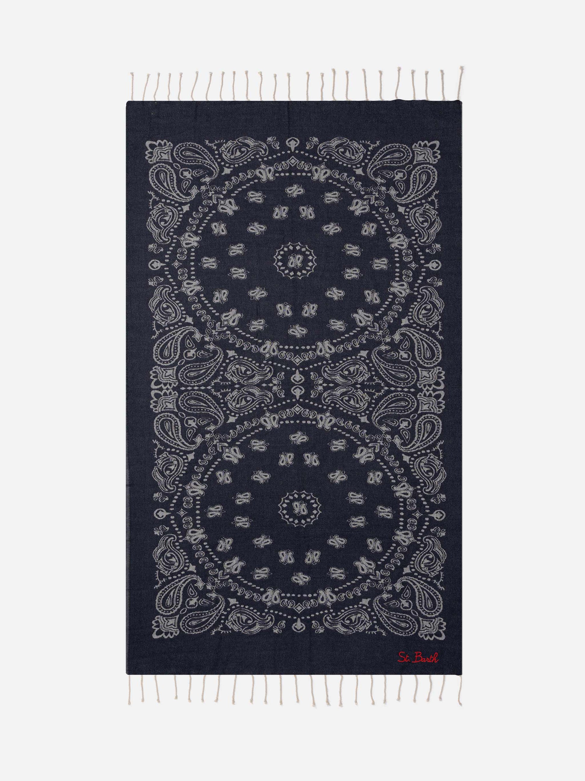 Telo mare Foutas in cotone jacquard con fantasia bandana blu navy