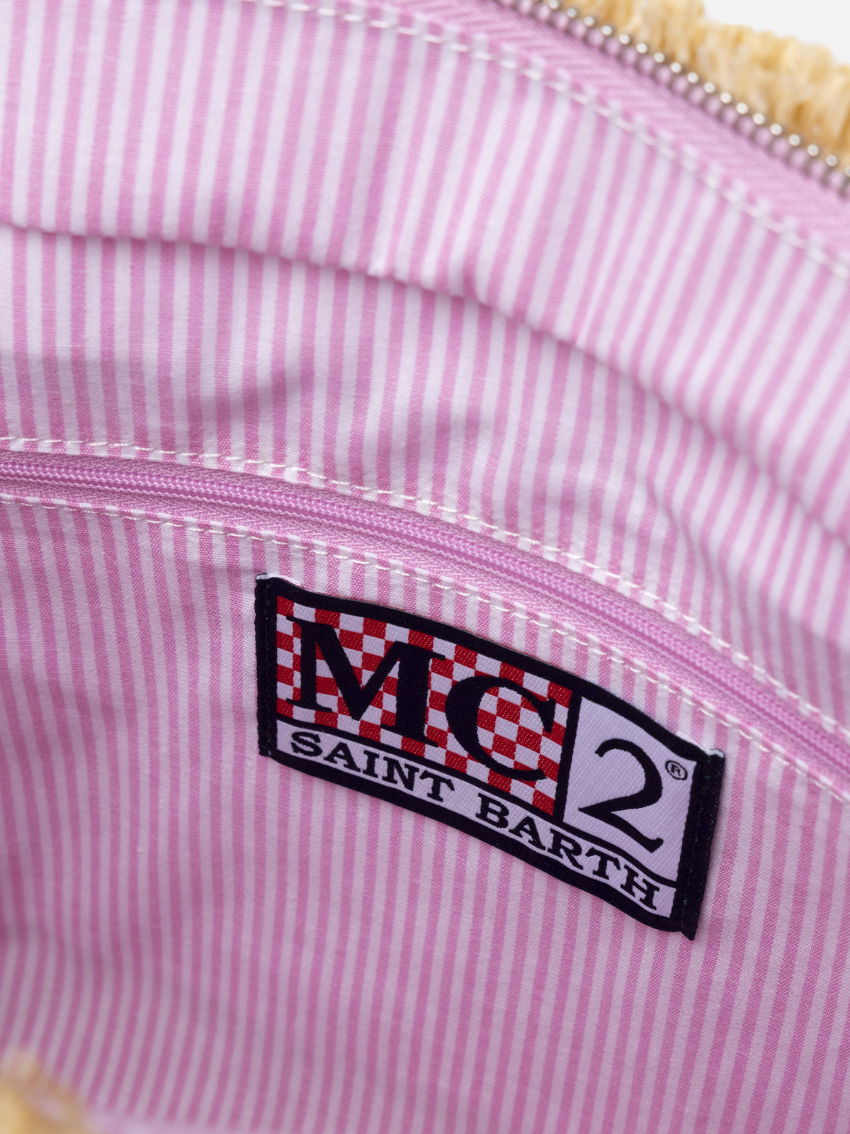 Borsa a mano Colette in paglia a righe fucsia con ricami
