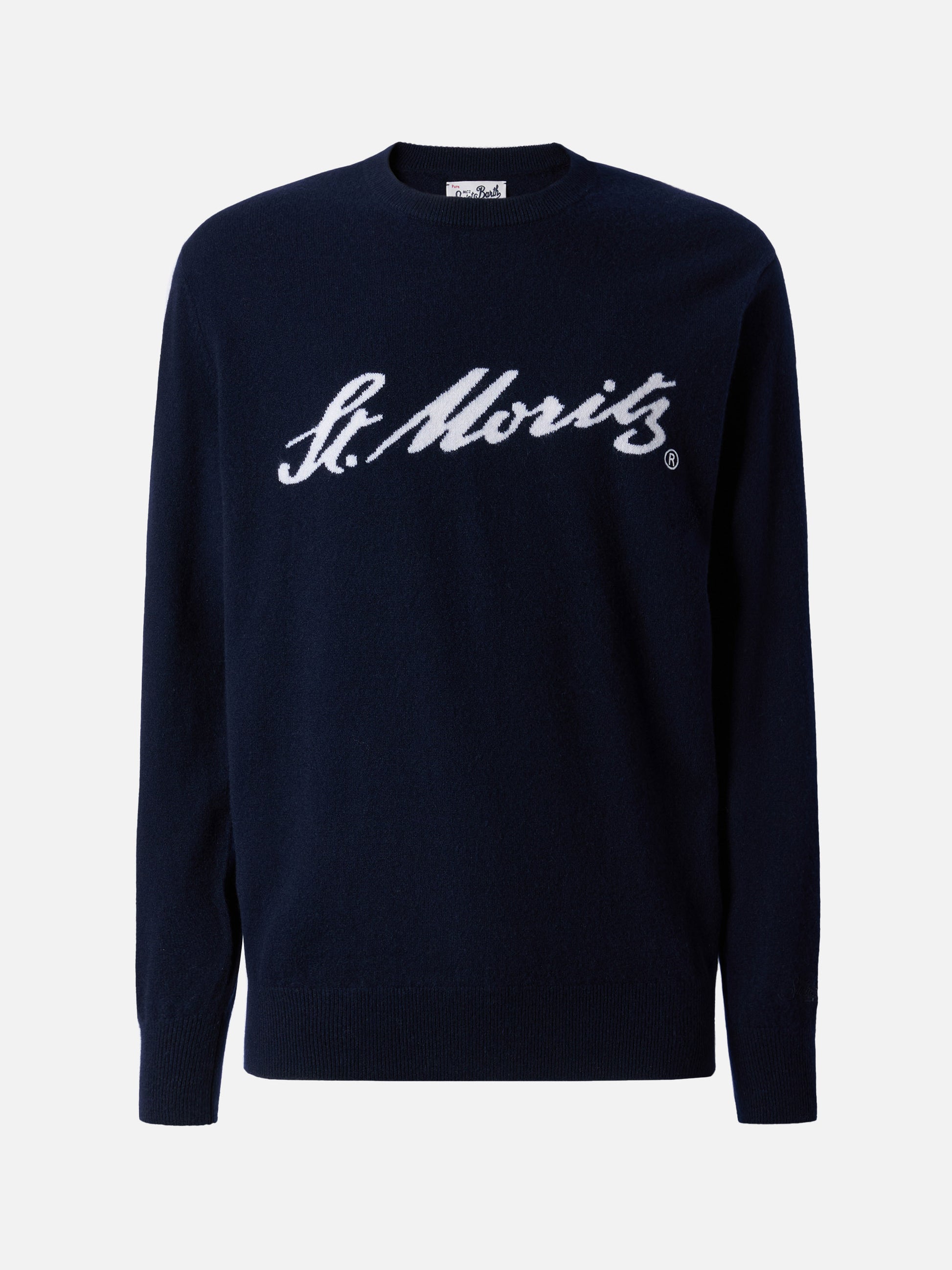 Maglione Heron Light in 100% CASHMERE blu con intarsio St. Moritz | ST. MORITZ TOP OF THE WORLD