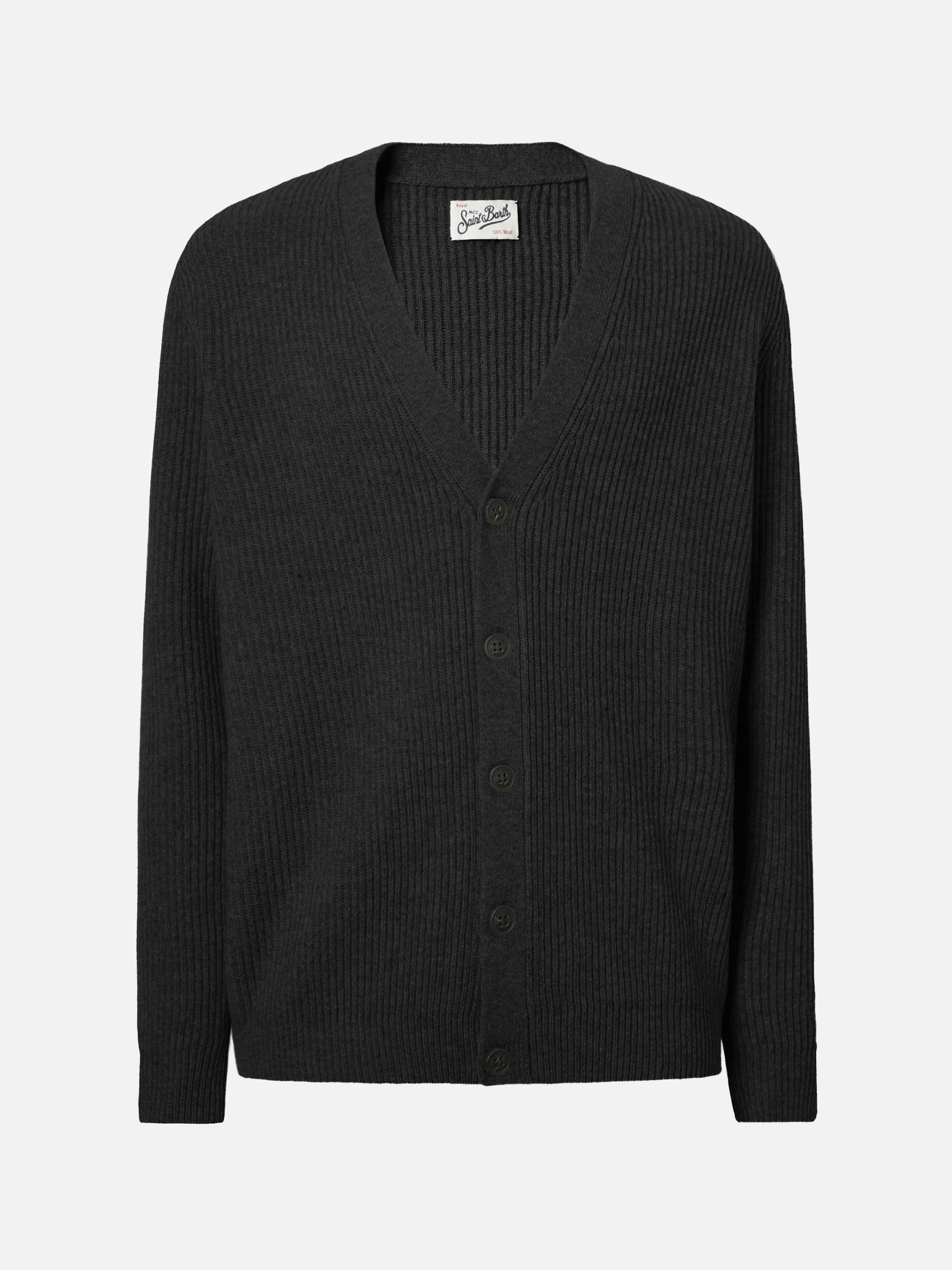 Cardigan Herrison in 100% LANA nero a coste inglesi