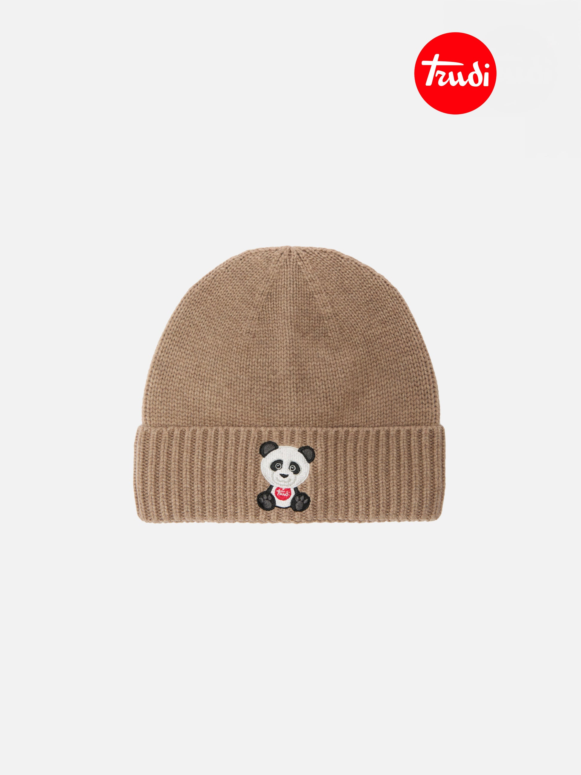 Berretto Holden in misto cashmere beige con ricamo Panda Trudi | TRUDI SPECIAL EDITION