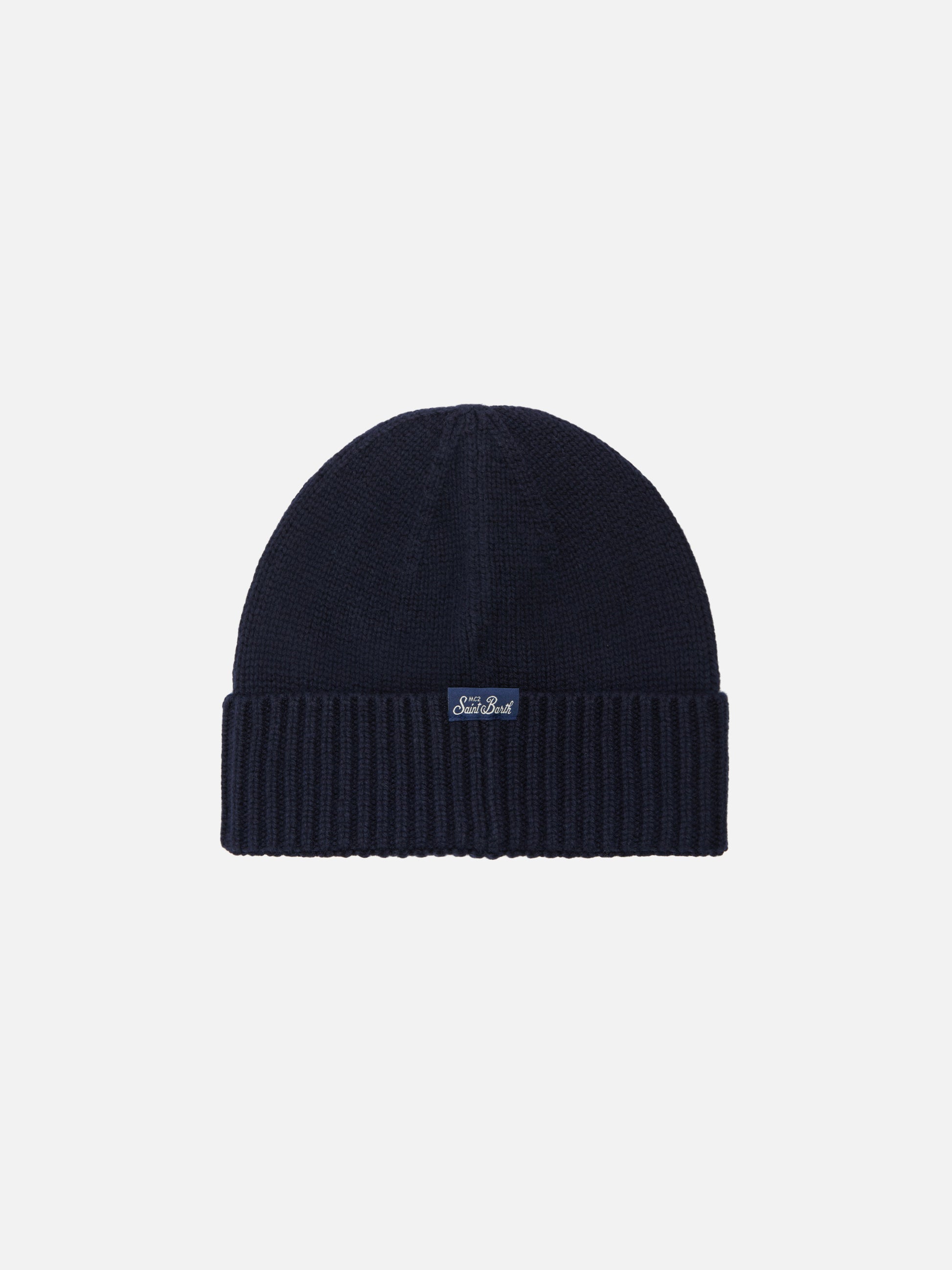 Berretto Holden in misto cashmere blu con ricamo Orso Trudi | TRUDI SPECIAL EDITION